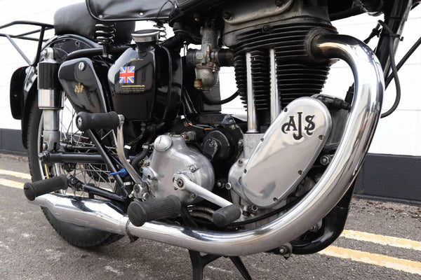 1951 AJS M18 500cc . In great condition looking to be an older restoration. Starts, runs and rides well. Comes with a current log book, Spares list, Some invoices and old MOT's. A very desirable example with the famous Jam Pot suspension, looks to be the only M18 Jam Pot on the market at the moment so if you want one be quick !
