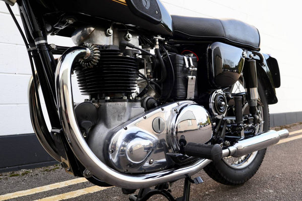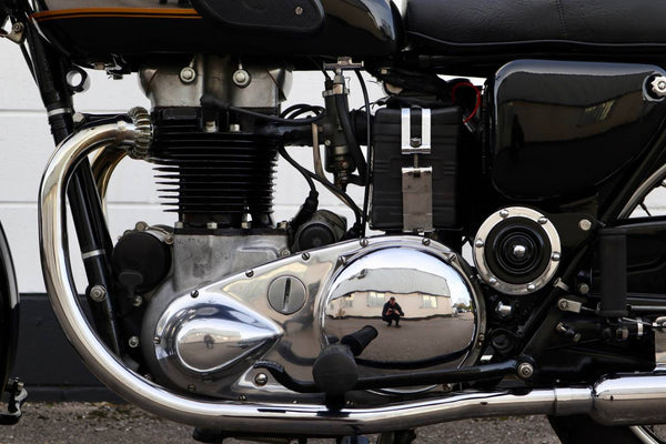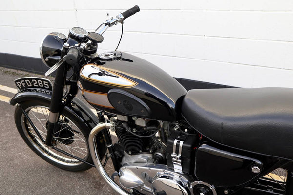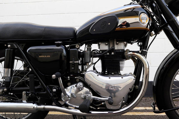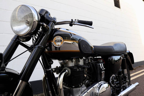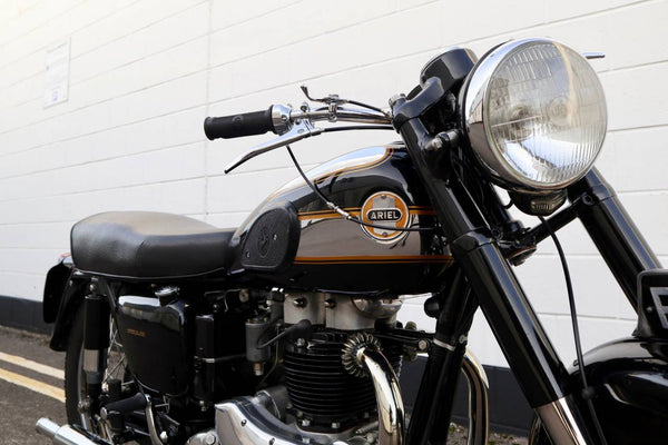 1954 Ariel Huntmaster 650cc. In as new condition having been fully restored and rebuilt from the ground up. Looks fantastic with the chrome tank and black paint. Comes with a comprehensive list of what that was carried out to the bike. The restoration cost over £10,000! The Ariel will need running in as its only covered 6 miles so far. This is a top example and a bargain price!