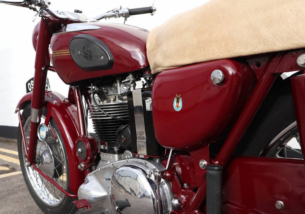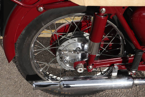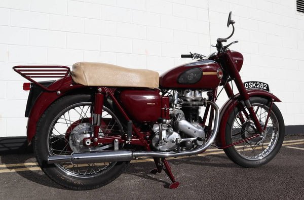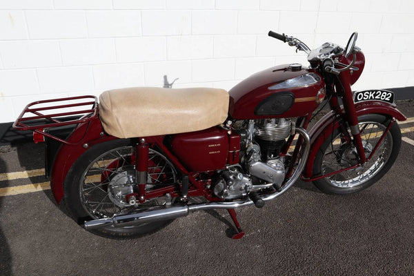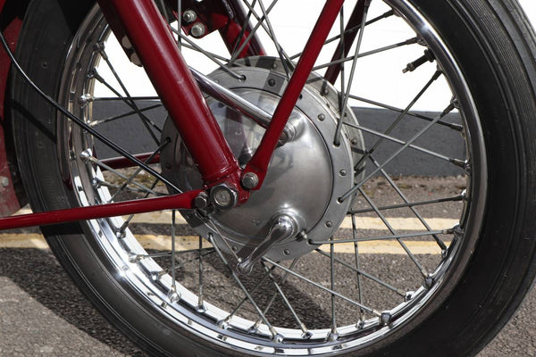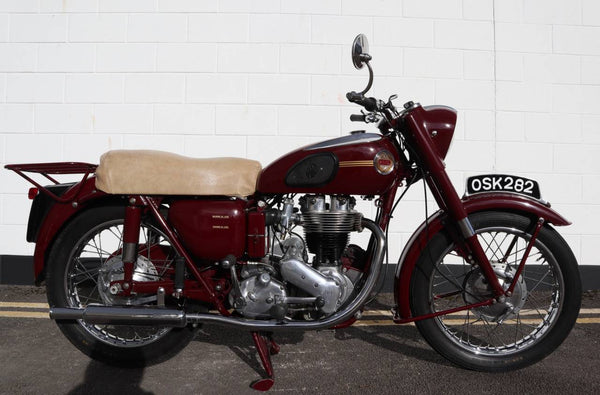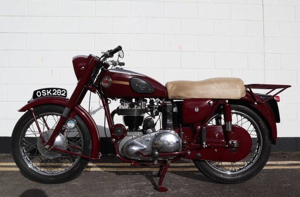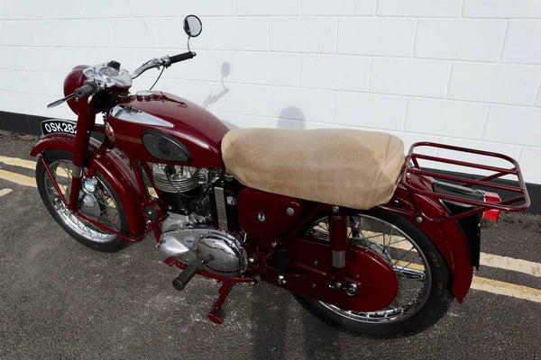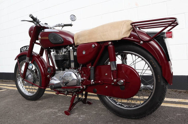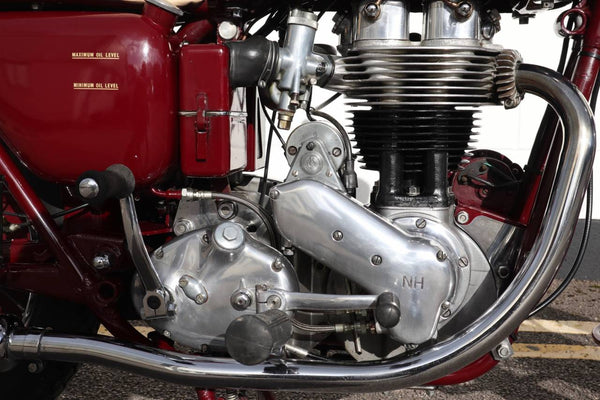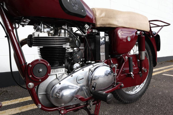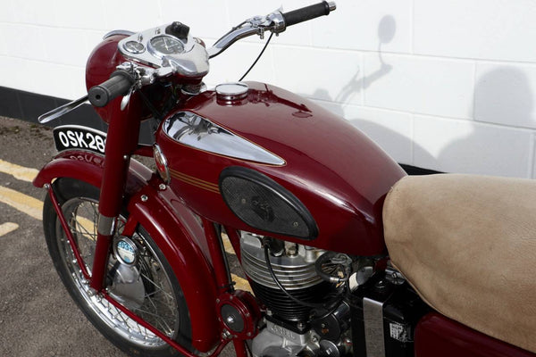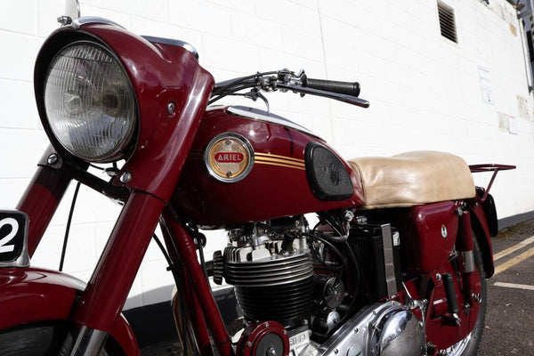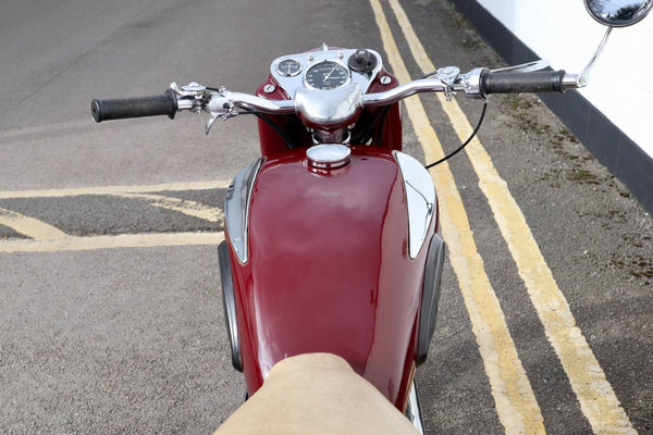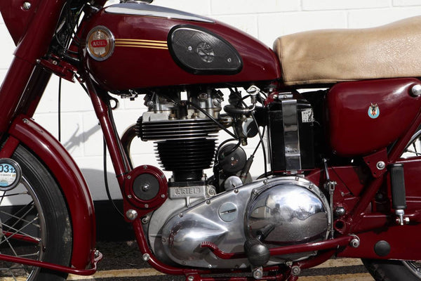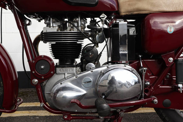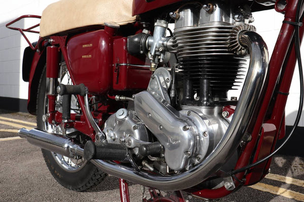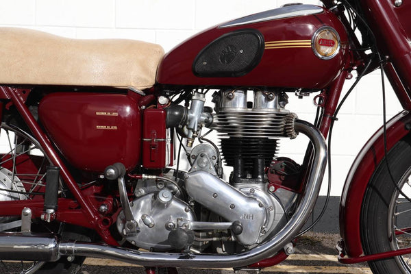 1956 Ariel NH350 Red Hunter. Looks to be in excellent original condition. Looks great with the full width hubs and fully enclosed chain guard. Starts easily and runs and rides very well. These are inexpensive pre-unit classics that are high quality and great fun!