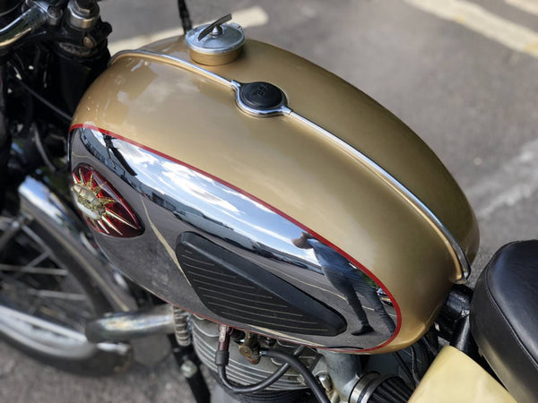Engine no A65DC.2859 (with bench test marker disc on inner timing cover as fitted to Clubmans) Frame No A50B.5514 Original matching engine and frame numbers. Correct Clubman top yolk, rear sprocket and centre stand and deep chrome headlamp shell and correct gold despatch colour for a Clubman .