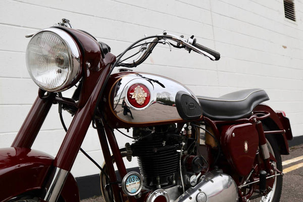 1954 BSA B31 350cc. In excellent condition having been recently restored to a high standard. Runs and ride very well with a strong thumping motor. Build with stainless steel rims and spokes. There are a few indents on the chrome parts of the tank which would benefit from being sorted as the rest of the bike is in great order. Ready to ride!