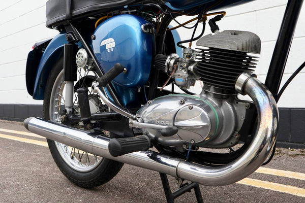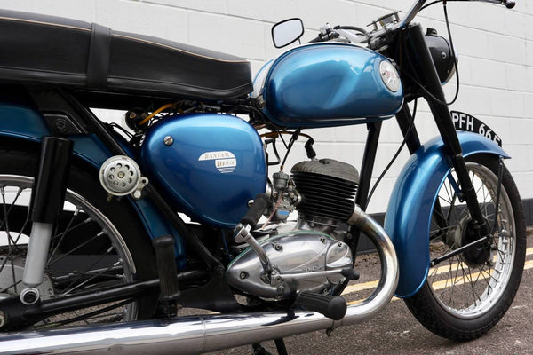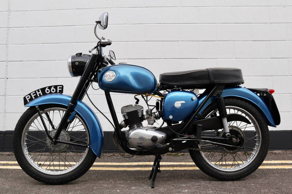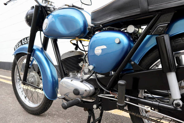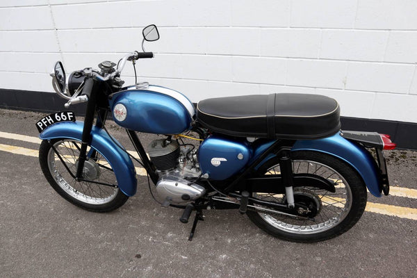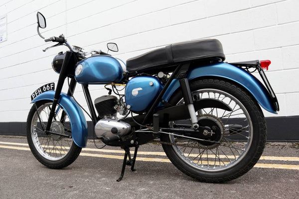 1968 BSA Bantam D14 175cc. Looks to have been restored with only 161 miles on the clock, the paint is very good and has also been fitted with a new Carb ( the old one is included in the sale ). Has matching engine and frame numbers. Starts runs and rides well. Comes with a Haynes manual and V5C log book. A very nice example and a great investment.
