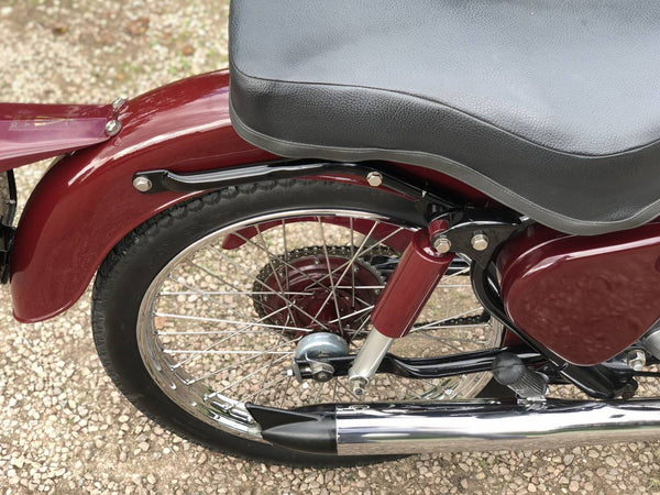 BSA Bantam D3 150cc 1959. This Is A Fabulous Fully Restored Example With Top Quality Paintwork, New Chrome And Rebuilt Rims. With Original Transferrable Registration Number, Tax And Mot Exempt. Rarer Than The Similar More Common D1 Bantam. A Charming, Light Weight, British Classic That Looks Glorious In Its Rare Burgundy Colour Scheme. A Fantastic Investment!
