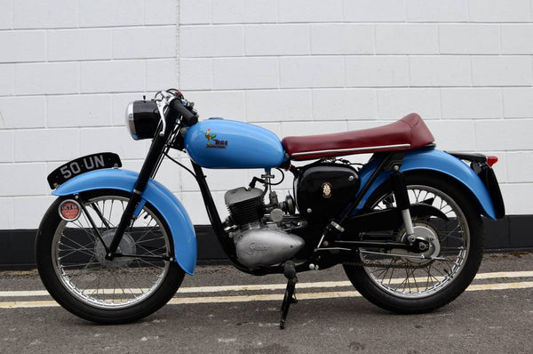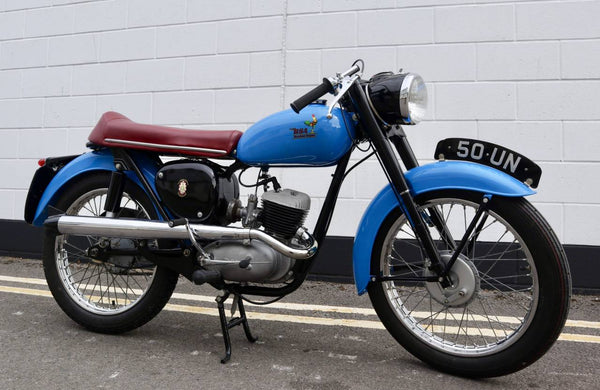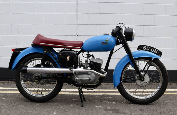 1962 BSA Bantam Super 125cc. In excellent condition having been restored with high level exhaust system, Ace bars and red sports seat. Comes with its original non transferable registration number ( 50 UN ) which looks great on the bike. Runs and rides very well as can be seen in the video. A handsome looking bike and also a fantastic investment.
