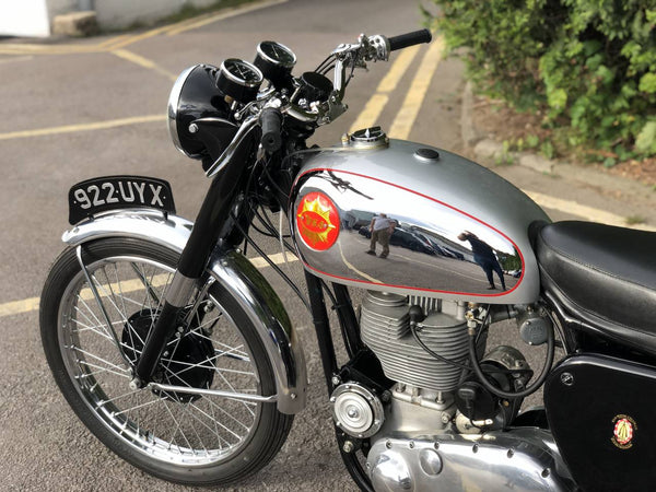 Genuine BSA CB 32 1954 This lovely fully restored example is in immaculate condition with fully rebuilt 400 cc engine and electric start . The frame and engine are from the same year but not a matched pairing for a B31 . If that doesn’t bother you then this could be for you as we’ve not seen a better one .