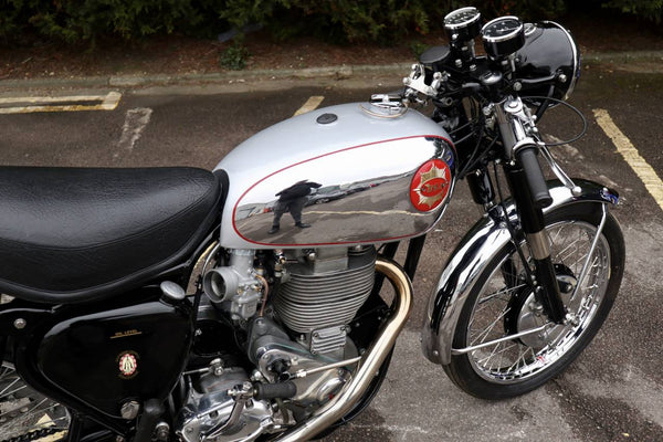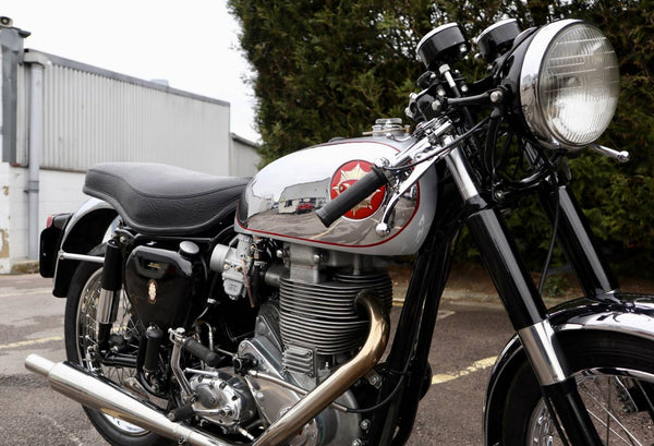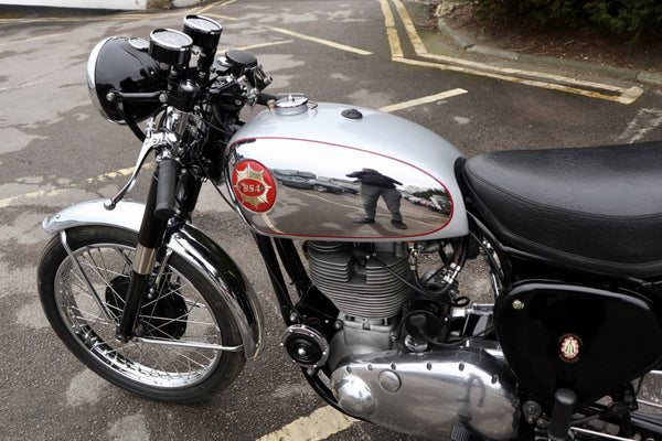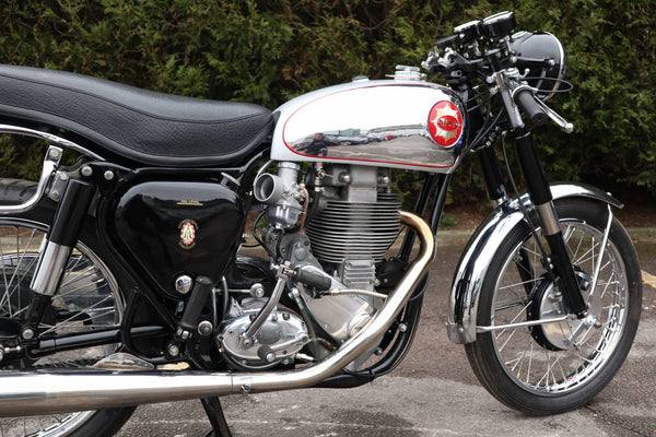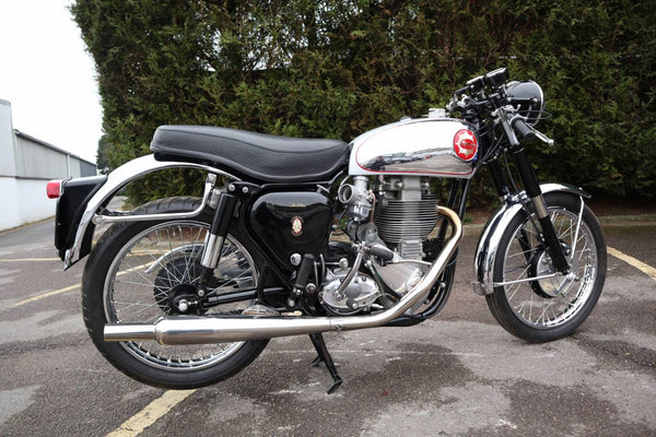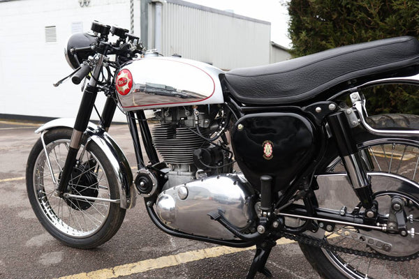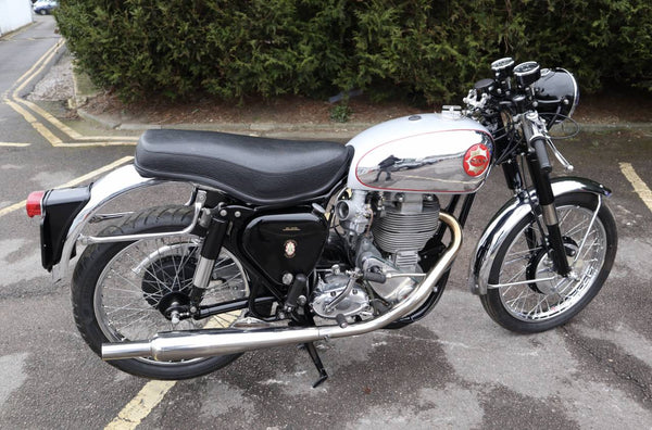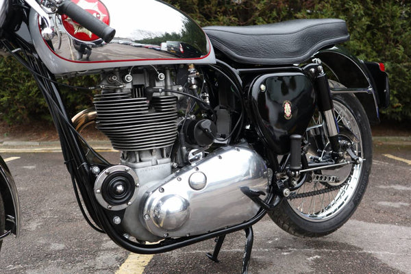 BSA Gold Star DBD 34 500 1956 . Totally Rebuit :- With newly painted frame with new swingarm bushes new shock absorbers hard chromed stanchions. BSA Frame CB32 ; the Engine is DBD 34 spec with an NEB crank assembly Wisco piston, clubman cams and head gas flowed by Roy Shearwood. Mikuni carb and std gearbox fitted for more tractable operation. Mag and dynamo recently overhauled. New tank and Leightons seat. Original Smiths speedo and tacho, stainless steel Goldie exhaust. Great fun and a very well sorted Example . Great Investment .