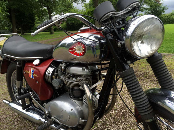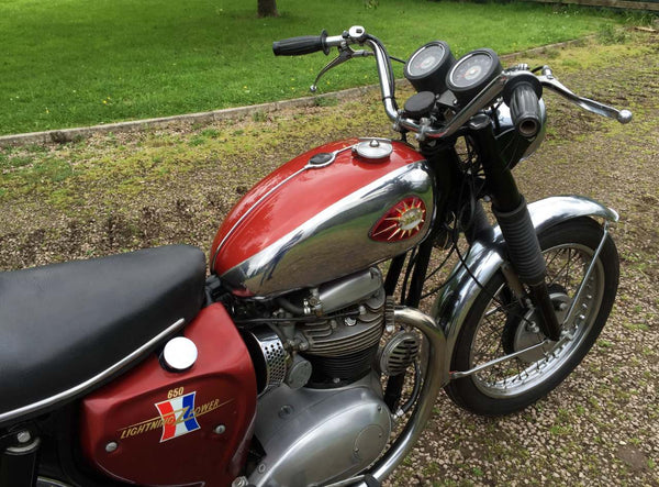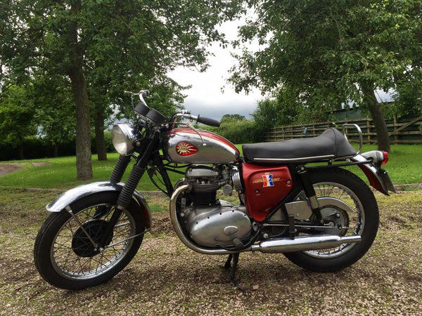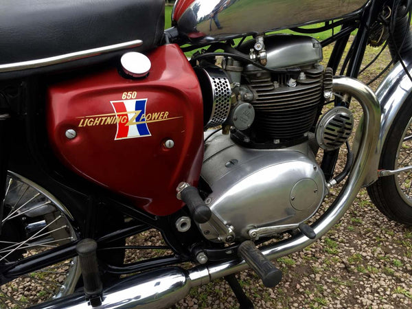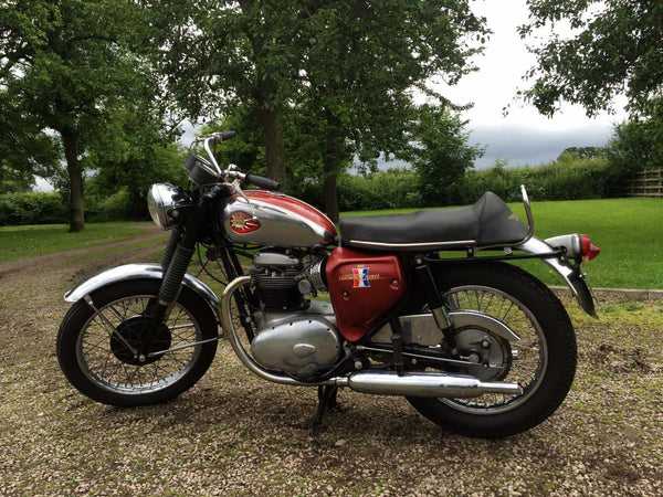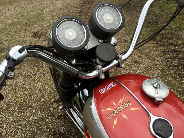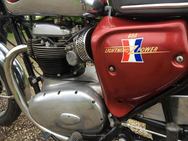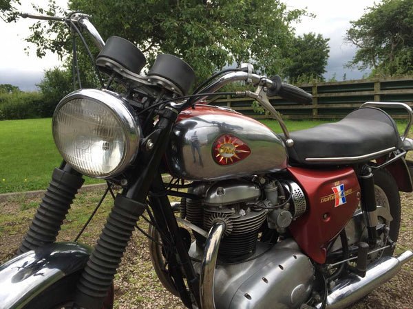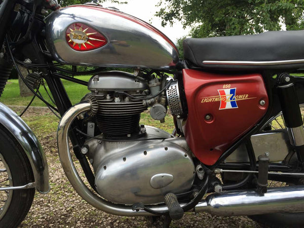BSA Lightning 1967 650cc, quite rare now as this is the pre oil in frame model. Very attractive with its red and chrome tank and chrome guards. looks to be very original still with the transfers on the tank and side panels. Starts runs and rides very well. A good alternative to a Bonniville and much more unusual. Makes a sound investment as well as Lots of Fun . A Great Riders Machine.