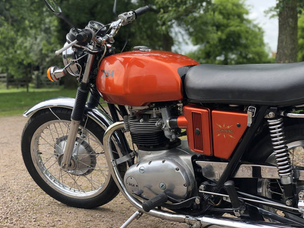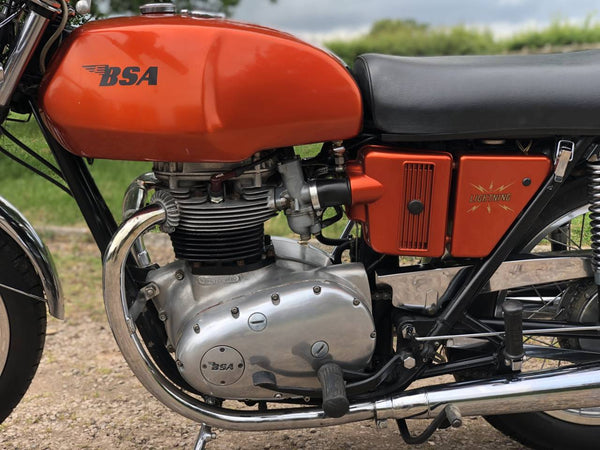 BSA Lightning 1972 750cc, Fully Restored Over The Past Few Years Buy The Previous Owners. With Matching Numbers, Conical TLS Front Brake and 7:50 Devi Mead Conversion ( Just Run In), Alloy rims, Polished Hubs And Brand New Michelin Pilot tyres With 100 miles On Them. Also Comes With A separate Correct And Original BSA UK Lightning Tank. Ridden And Well Maintain By The Previous Enthusiast Owner. Overall A Very Usable Classic For The Modern Day And A Superb Investment!