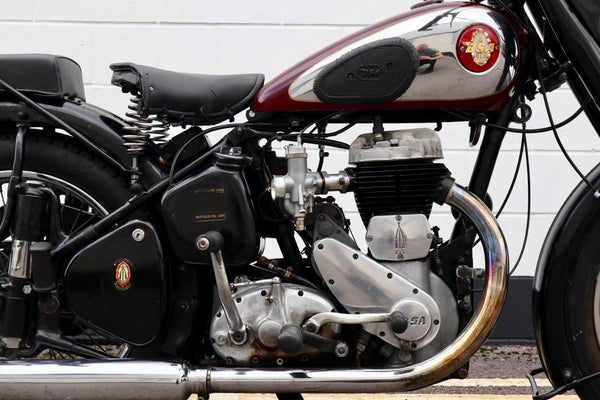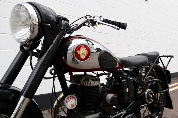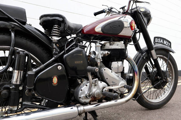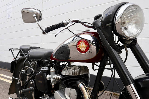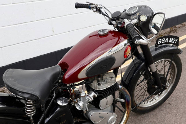 1954 BSA M21 600cc. In good usable condition with original registration number thats also transferable ( OYR 327 ). Showing only 14595 miles on the clock and with only 4 previous keepers since 1954. Just fitted with a brand new Amal carb. Starts easily and runs well although it does wet sump. A good usable example at a great price.