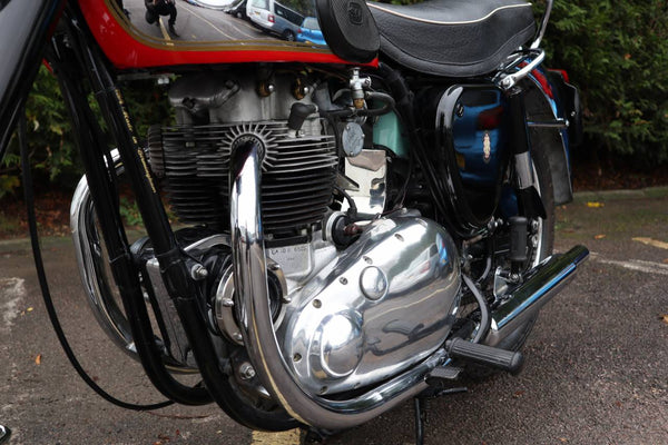 1956 BSA Road Rocket 650cc. This is a very original and rare model with the original Ariel full width drum brakes. Fully rebuilt with uprated cams. This bike was one of the winners of the VMCC 2010 Calendar Competition, a copy of the calendar comes with the Road Rocket where it can bee seen on the month of February. Starts easily and sounds great as these 650cc pre-units do. Comes with a good file of history which includes a V5C log book, Old MOT's, Old Tax Discs, Receipts and The VMCC Calendar as mentioned. Road Rockets don't come up for sale as often as the later Super rockets and especially not in this condition! A fantastic investment and great fun too!