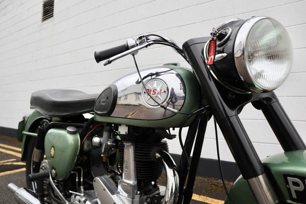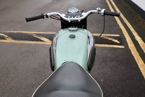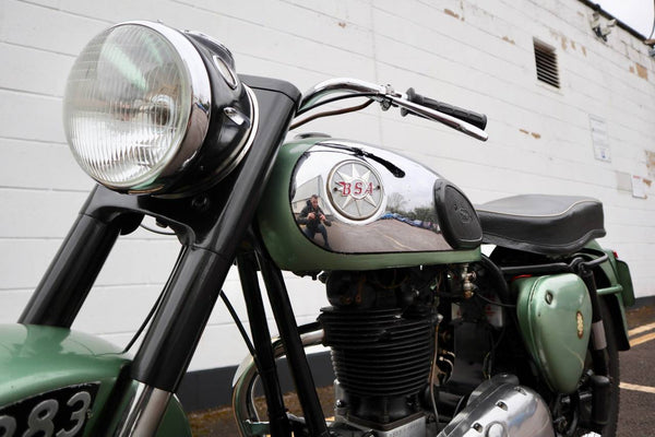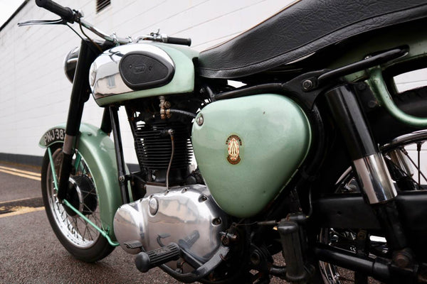 1959 BSA B31 350cc. In usable condition looking to be an older restoration. Comes with its original transferable registration (PNJ 393). Starts easily and runs and rides as it should. This is a good chrome tank example thats ready to ride!