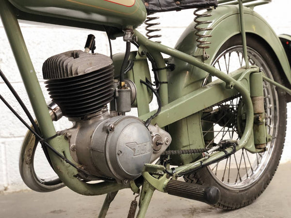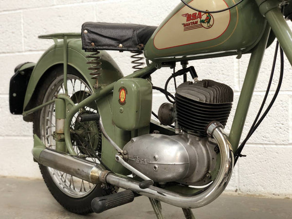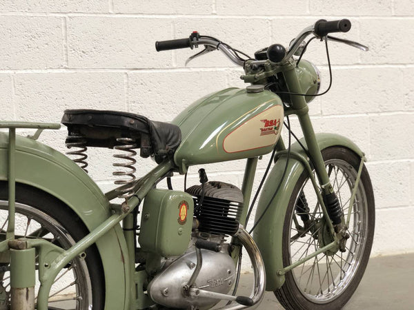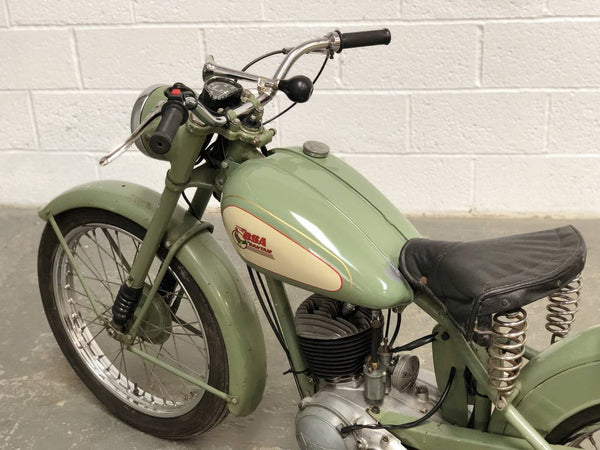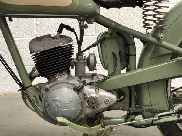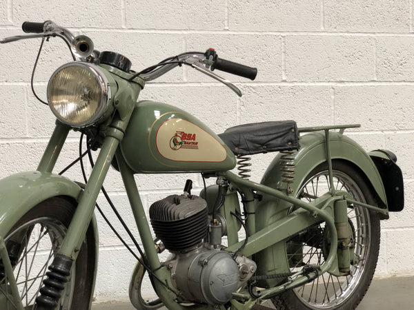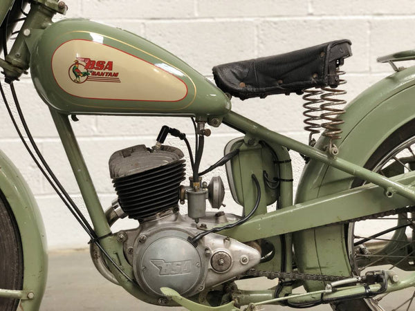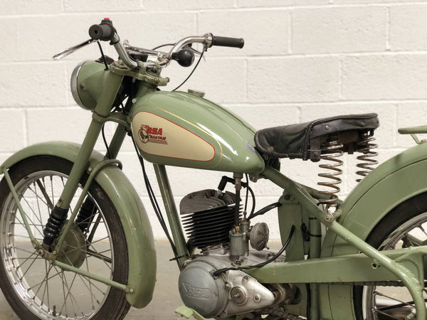 BSA Bantam D1 1954 This Example Is a very original plunger model , that's not been messed around with and has lots of original patina of its age .. no paint touch ups or upgrades and would make a great little ' riders bike ' It starts very easily and runs and rides lovely and being very lightweight is very easy to move around and manoeuvre on the road. A very easy to live with mechanically simple to maintain desirable model.