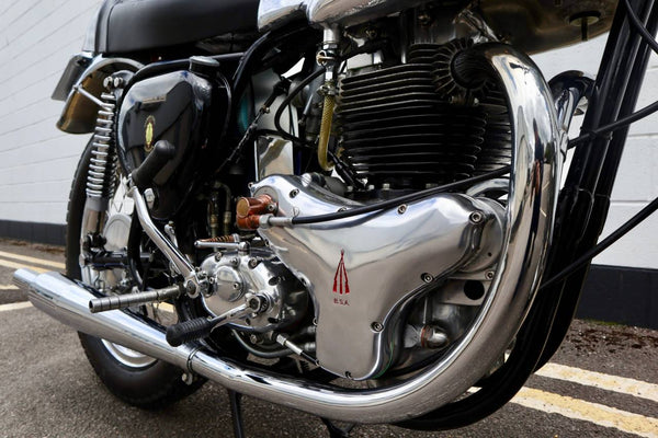 1959 BSA Rocket Gold Star Replica 650cc. In great condition and looking very attractive with Allie tank, Allie dunlop rims and vented twin leading front brake. The BSA has been subject to a full engine rebuild as seen in the photos which includes: Replacement crank with new bearings and cleaned out sludge trap, new pistons, barrels, timing gears with belt drive, valves, guides and much more ( many SRM part were used ). This is a very well sorted, high spec machine that now ready to ride and enjoy. A great looking bike and a fantastic investment.