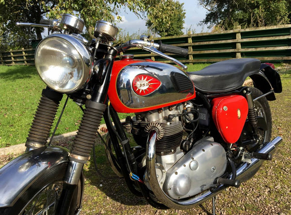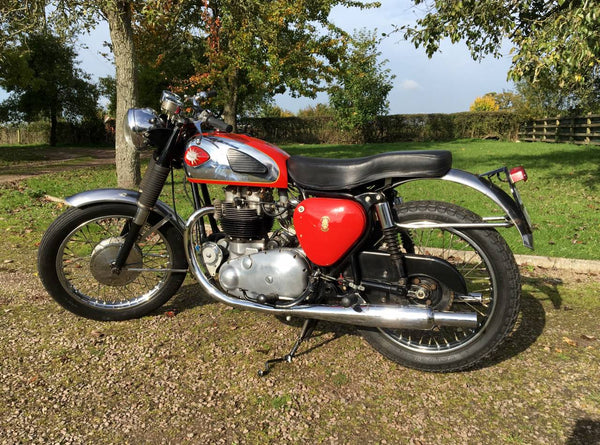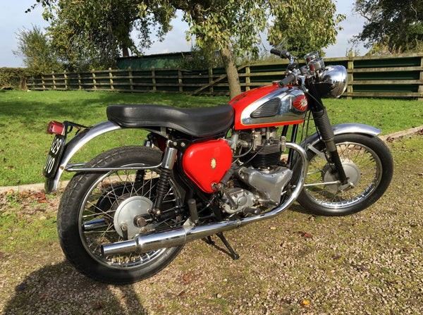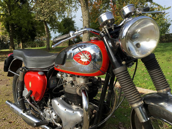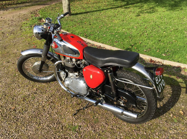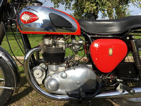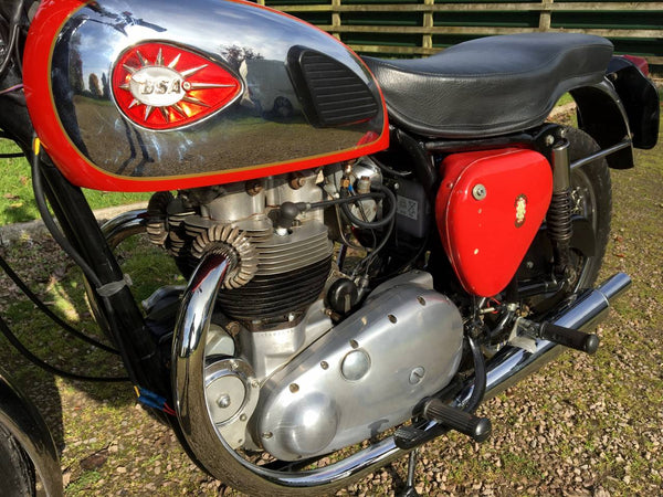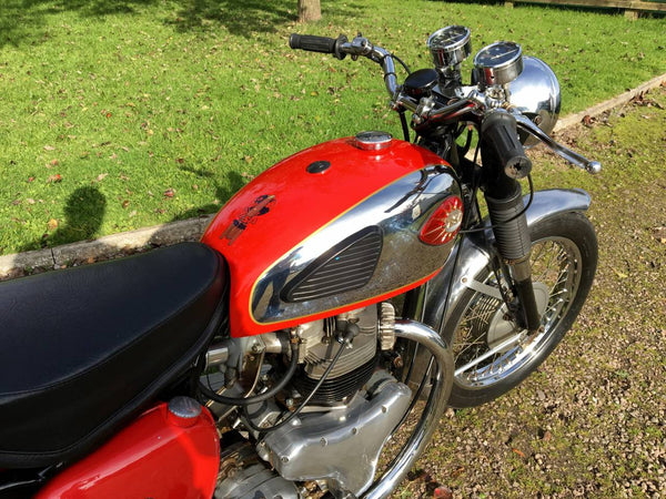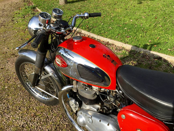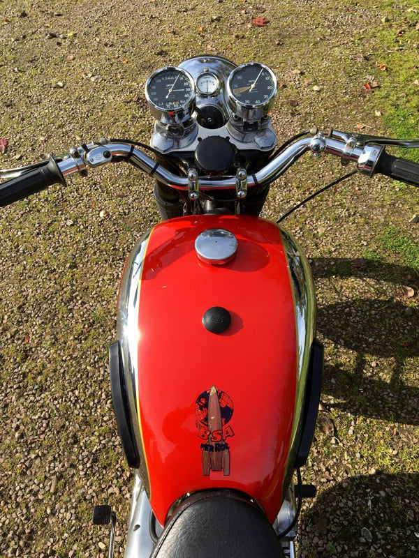 BSA Super Rocket 1960 650cc, in Red and Chrome with Twin Clocks and Dunlop Rims. Goldie Silencers with Age Related Patina. Starts Very Easily Has a Sweet Motor and Sounds Glorious Through the Goldie Pipes. Comes with Original Green Logbook and V5C Ready. For the Road!