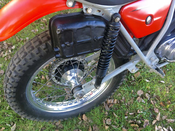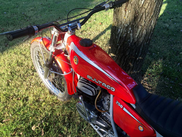 Bultaco T250 Sherpa 1976 Very Pretty In Red with Silver Frame. In older Restored Condition, Starts Easily and Runs Very Well. Great For Off Road Fun, Now Very Collectable and a Sound Investment