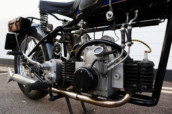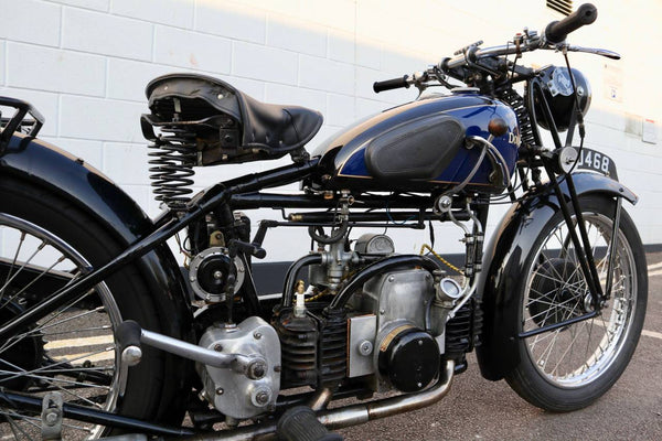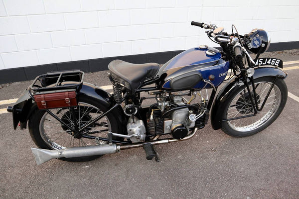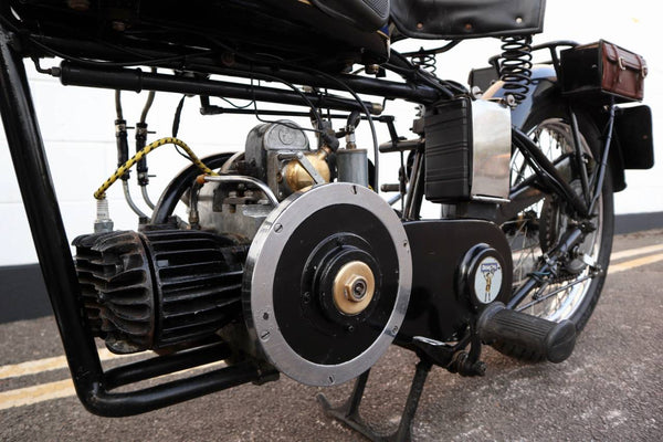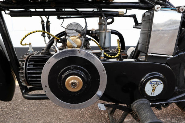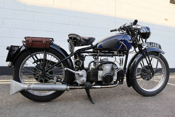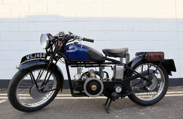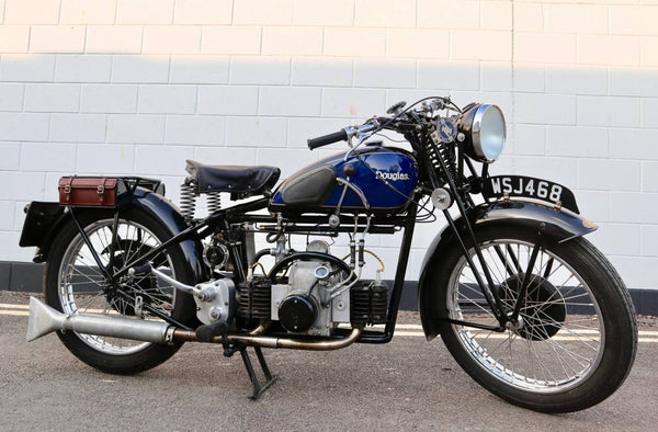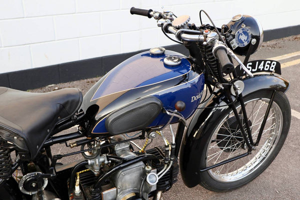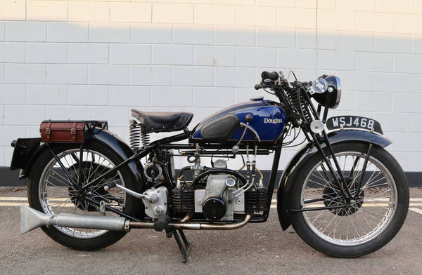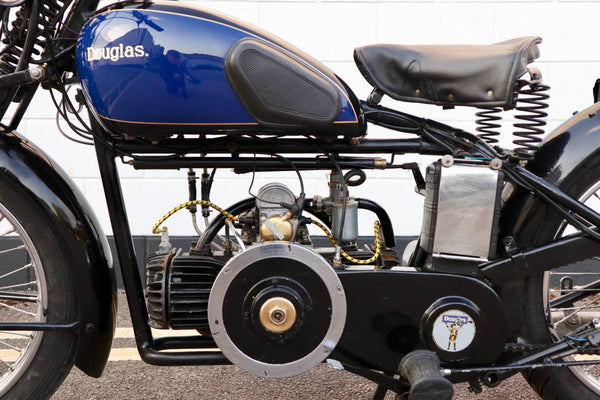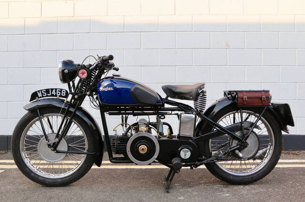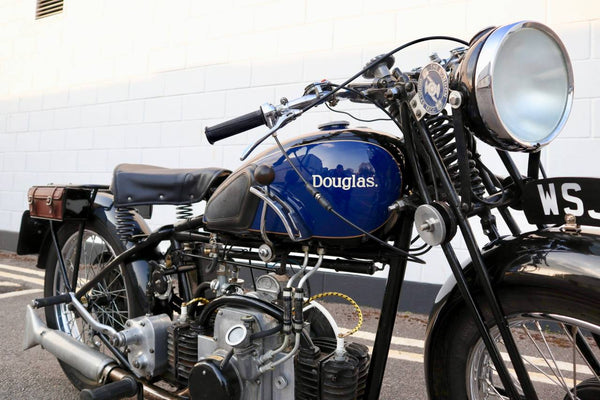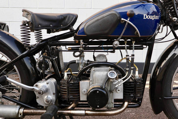1938 Douglas Aero DC38 600cc. A very rare model in excellent condition. The tank paint is in excellent condition. All chrome is excellent. All tinwork is excellent. Saddle is in perfect condition. Toolbox leather flaps are new.
