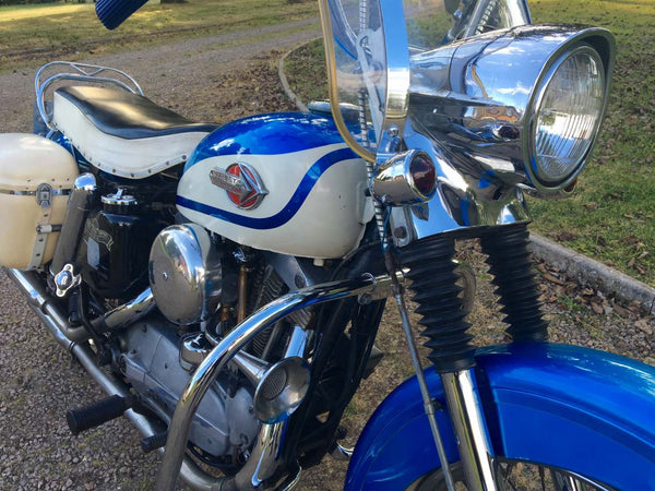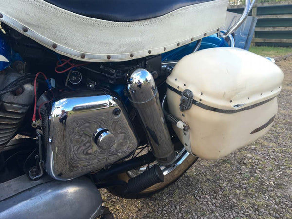 Harley Davidson XLH Sportster 1960 Very Rare and Original, with Streamline Panniers, Buddy Seat Windscreen, Front Crash Bars. Indicators and Trumpet Horn. 32000 Miles From New Unused for the past 2 Years so will need new Battery and slight recommissioning. Featured In Classic Bike Guide October 2007 with Copy of the Article .. Offers Accepted !