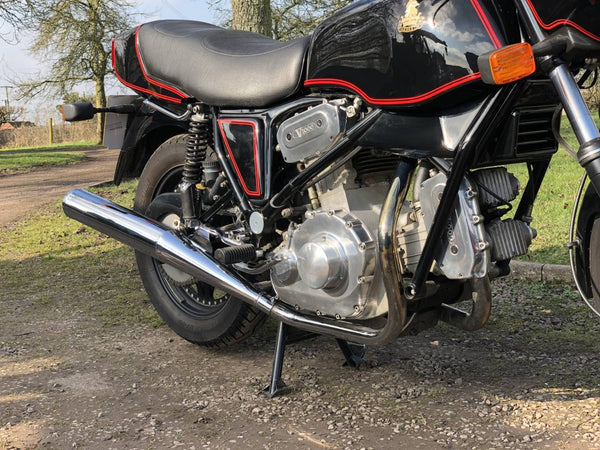 Hesketh V 1000 , Rare Pre-Production Model ,1981 Registered . In Stunning Condition ; Like New ! Comes With A Genuine 8852 Miles ! It's In The Very Attractive Black And Red Colour Scheme ; See pics . Doubt Very Much If You Can Find A Better One , As They Rarely Come Up For Sale . Starts Easily , Sounds Lovely , With A Long Mot . With EN10 modification, A Very Rare Machine And A Great Investment .