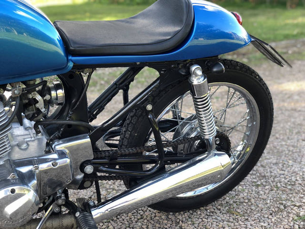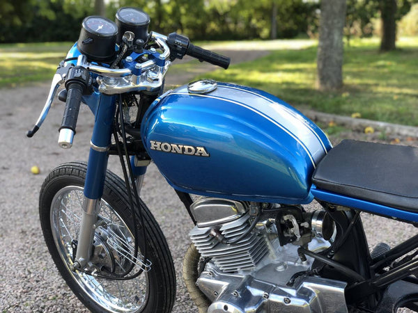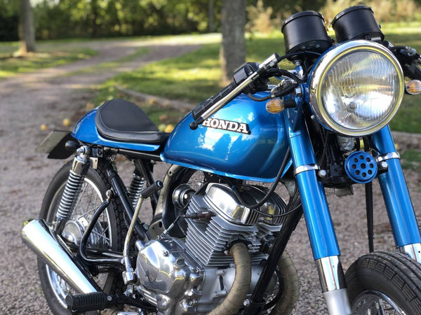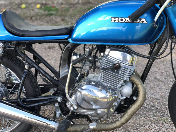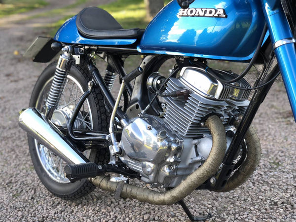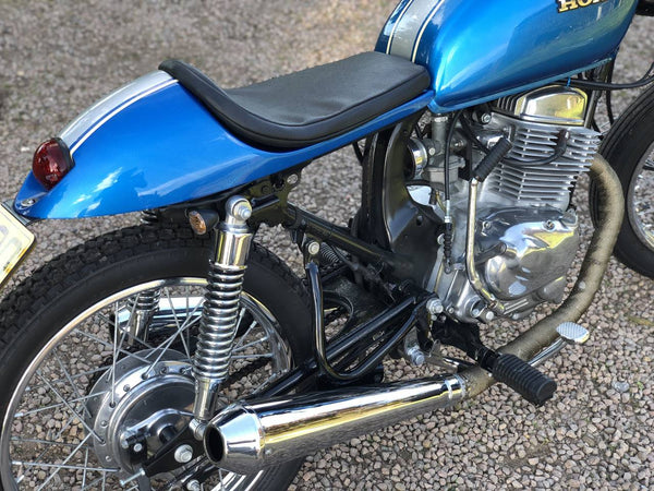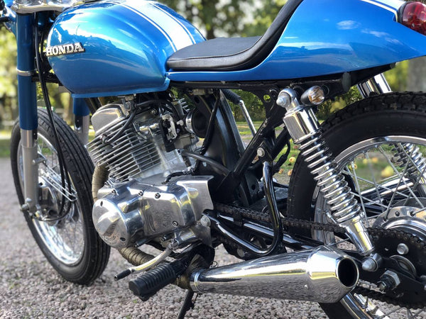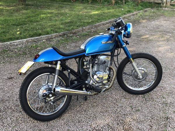 Honda CD200 Cafe Racer 1983. This CB200 Has Been Professionally Chopped By Complete Café Racer And Can Be Seen In Their Gallery (https://caferacerseats.co.uk/). Sounds Awesome With The Twin Pipes Giving It A Very Deep Thumping Exhaust Note. Almost 20mph Faster Than The Standard Bike Due To The Weight Reduction. Light Weight And Easy To Start, This Little Thumper Proves You Don't Need A Big Motor And Big Power To Put A Smile On Your Face. Will Be Fitted With A Handel Bar Mirror.
