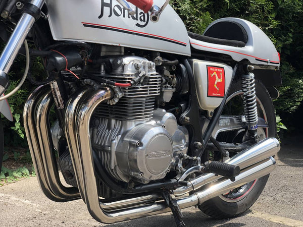 New front and rear wheel bearings, New fork seals and oil. The exhaust system is 4 into 4 straight through so it sounds amazing. The paint and styling is based on the Manx Nortons. All dials and switch gear is original 400 four and pretty much everything else bar the exhaust, clip ons and seat unit are original. There are a few tiny marks due to the amount of use. All in all an amazing looking and sounding work of art .