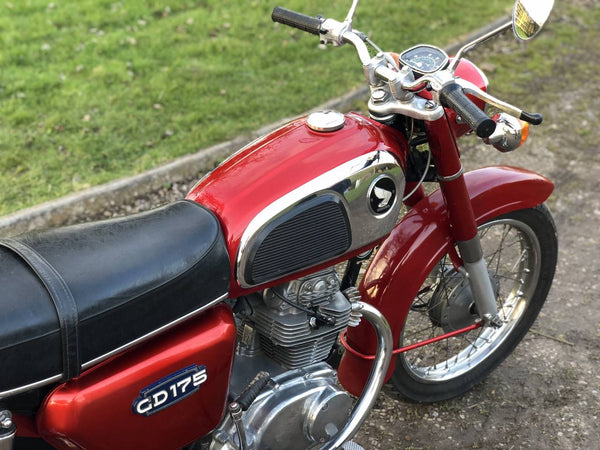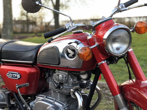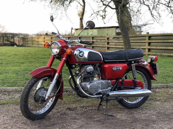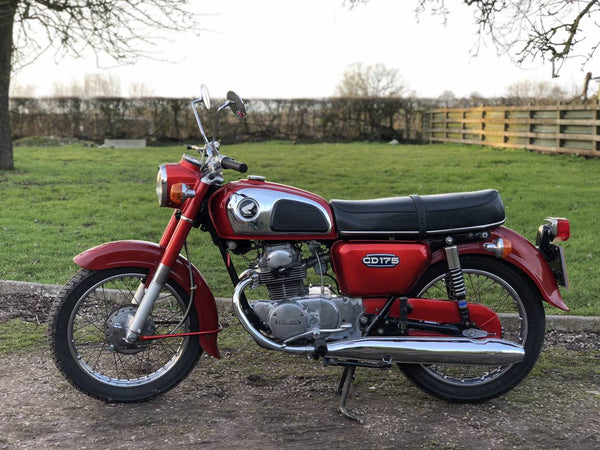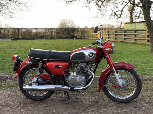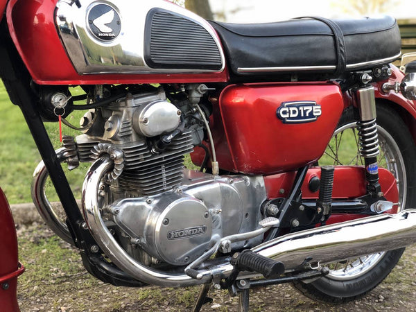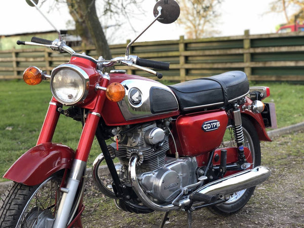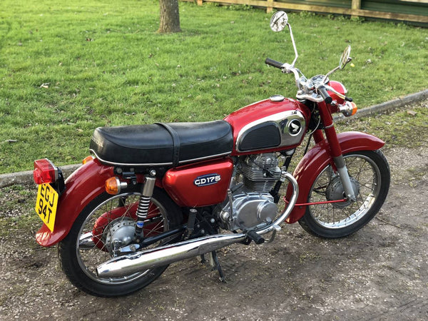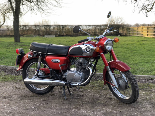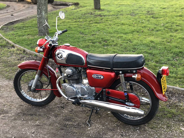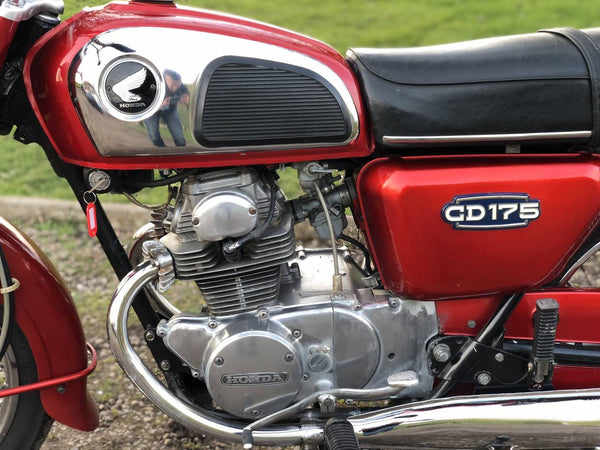 Honda CD175 1976, In Beautiful Colour Scheme Of Bright Red & Chrome., With Just Over 10,000 miles On the Clock. Still Retaining Its Original Grey Colour Cables. Starts First Prod Of The Kick Starter. Light Weight, Easy To Handle And In Superb Original Condition.