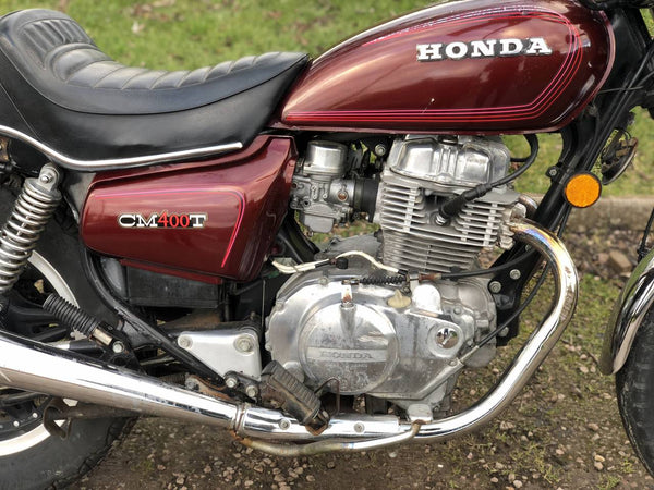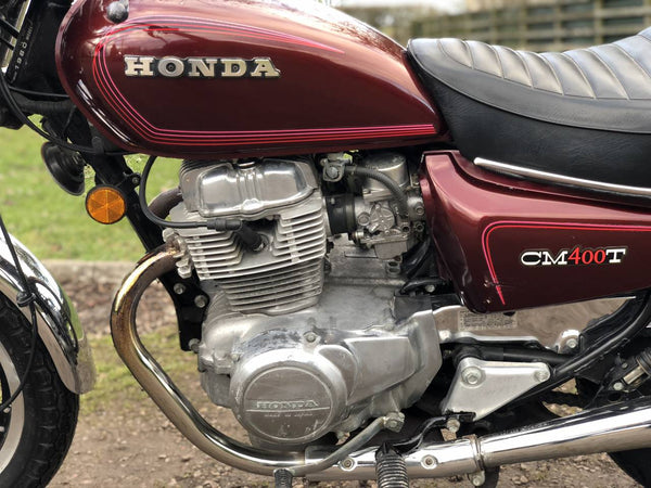 Honda Dream 400 Twin 1980 , Model CM400T. This Popular Middleweight , Looks To Be 100% Original , When Compared To The Original Sales Brochure And Only Covered 8110 Miles! It Starts On The Button ; Immediately And Has A Whisper Quiet , Bulletproof Engine , Together With A Good Turn Of Speed And A Great Sounding Exhaust Note From The Twin Megas , When Reved Up. Comes With A Fresh ; No Advisories Mot And Is Very Comfortable To Ride Long Distances , With Relatively High Speed , Relaxed Cruising . It Has Brisk Acceleration And Is A Great All Rounder . A Good Alternative Buy To The More Expensive 400/4 ! Prices For These , " Go Anywhere " Machines Are Now Rising , As Inexpensive To Buy And Easy To Live With , So Are Good Investments. Fun To Ride Too ! BARGAIN ONLY £2950 !