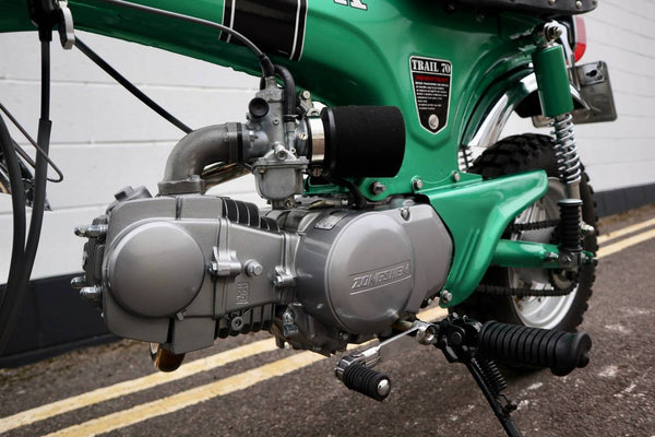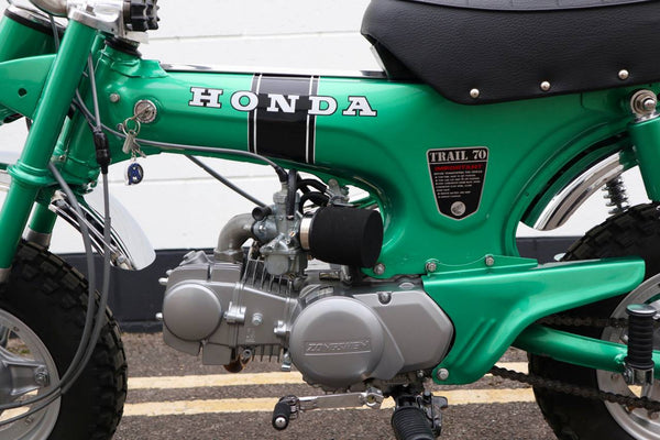 1969 Honda CT70. Fully rebuilt with 125 Zongshen 13HP Engine Fitted, also comes with its original engine included in the sale which has also been fully rebuilt ( all confirmed by a Honda dating certificate. This is an early 1969 silver tag example. Ready to ride and enjoy!