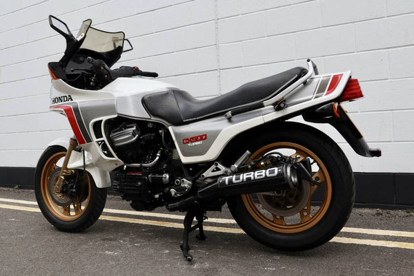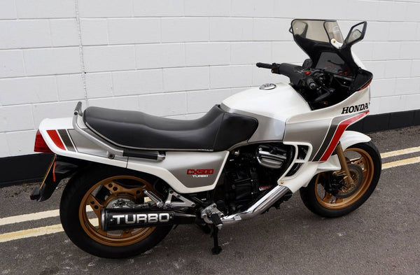 1982 Honda CX500 Turbo. With 47147 miles on the clock. An all original example in excellent running order. Starts on the button and runs great with everthing working well. These CX500 Turbo's don't come up for sale very often in the Uk and this is in fantastic condition for its age. Lots of work was carried out in 2018 which includes new water pump, re painted wheels, re-conditioned turbo, full service, new rocker cover gaskets and more. Ready to ride and a great investment!