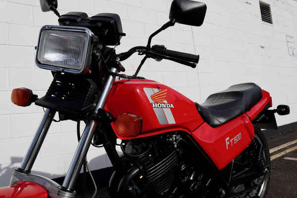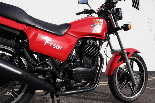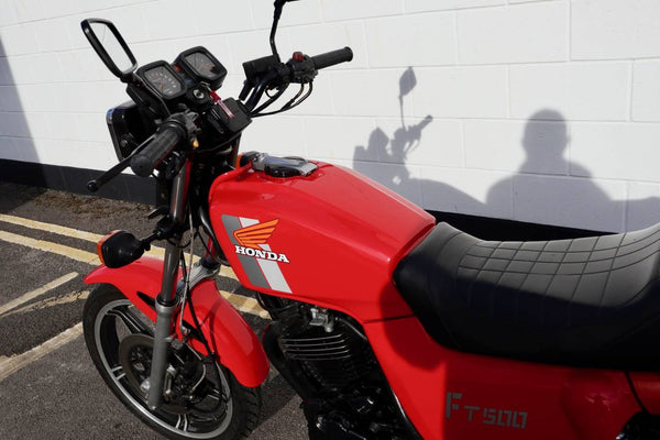 1982 Honda FT500 Ascot Flat Tracker. In great condition looking to have been restored at some point. Recent work includes new sprockets and chain. The engine is very quiet and starts easily on the electric starter. New silencer fitted,( comes with the original) also with a new seat cover. A rare model and an excellent example that ready to ride!