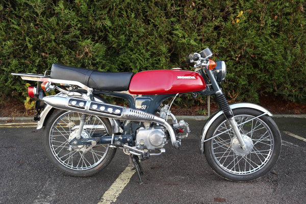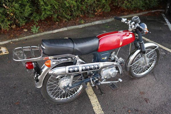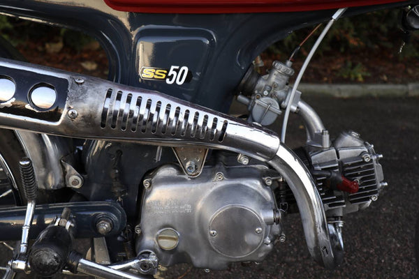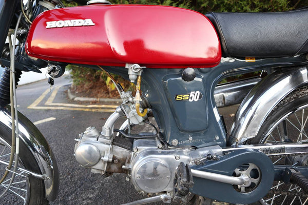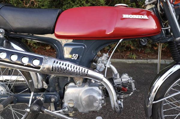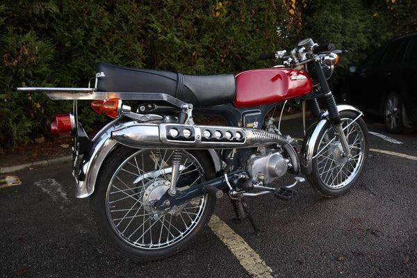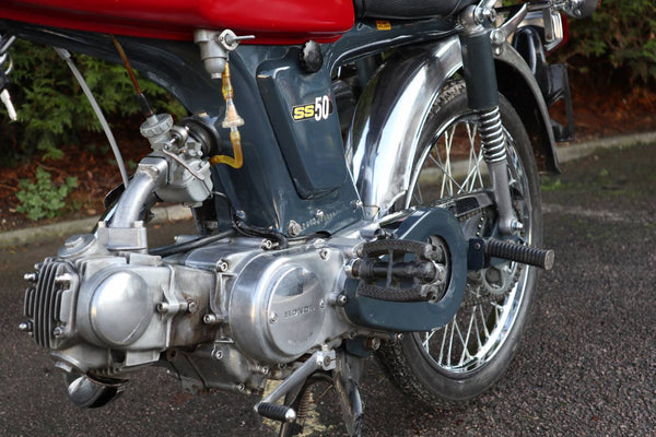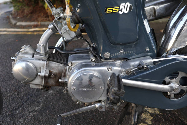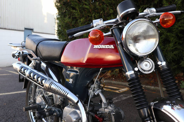 1974 Honda SS50 1974. Barn find in 2017 but has since had a restoration which includes: engine work, wheels rebuild with stainless steel spokes , new brakes and wheel bearings. In good condition with room for some cosmetic improvement.