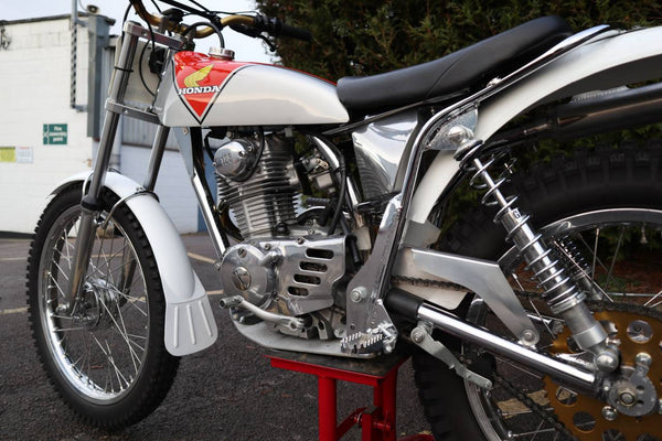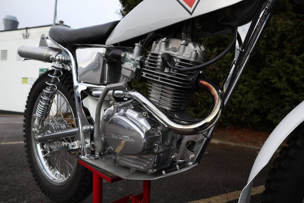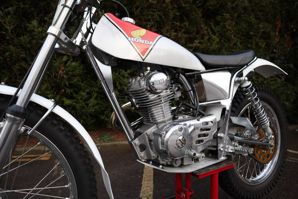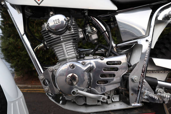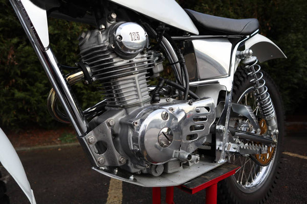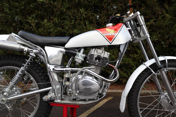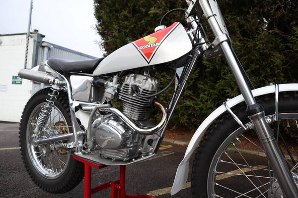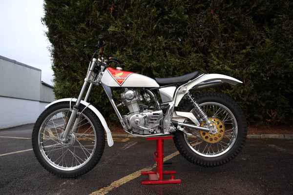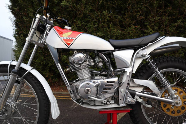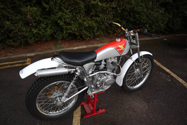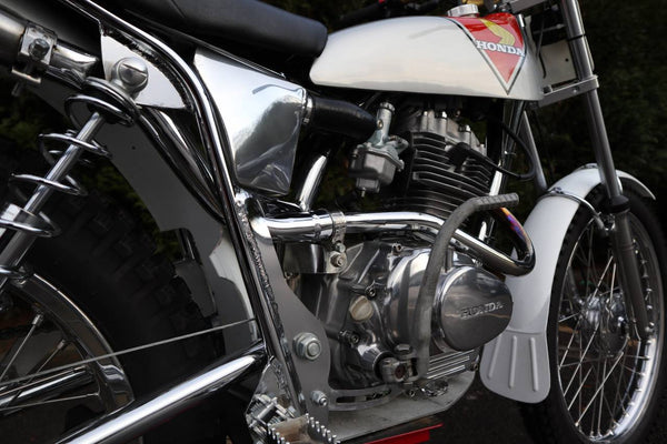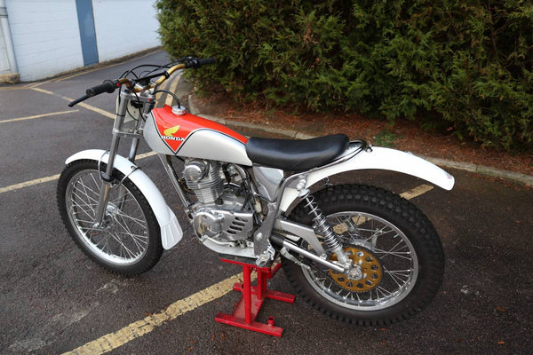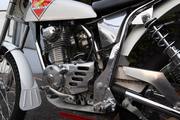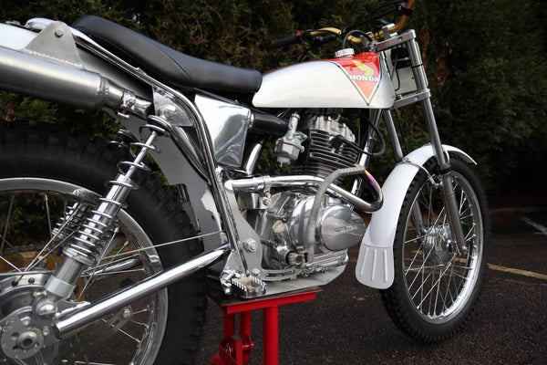 Honda TL125 1974. Fully Rebuild and restored. Engine rebuilt by Brian Wade's mechanic. New parts include, cam chain and guides, main bearings, clutch, gear and kick start springs, valve springs, 144cc Sammy Miller conversion.