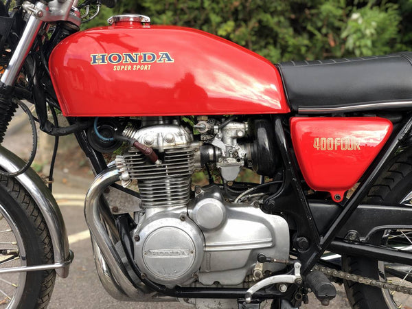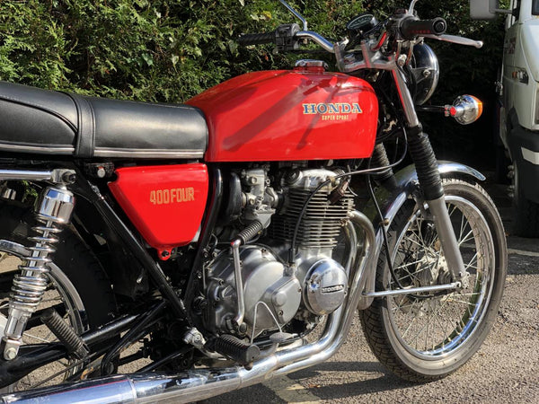 Honda 400/4 1976 in used condition very attractive red and chrome with new wheels tyres shock absorbers exhaust etc starts first push of the button rides extremely well an appreciating classic that's easy to handle and swift too. Nothing to do on this one just ride and enjoy!