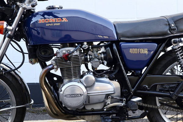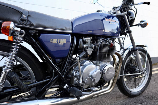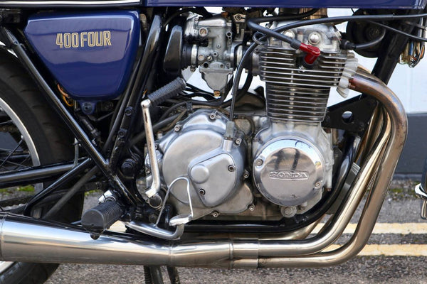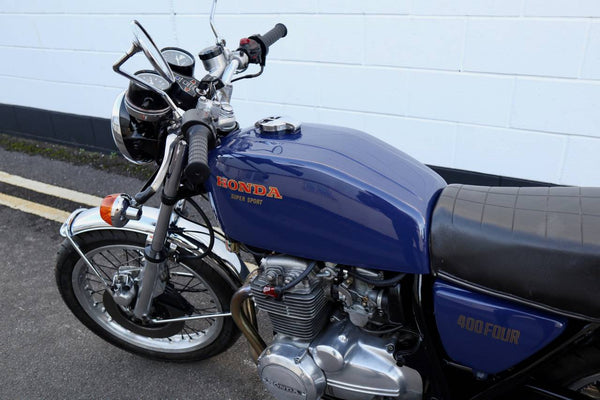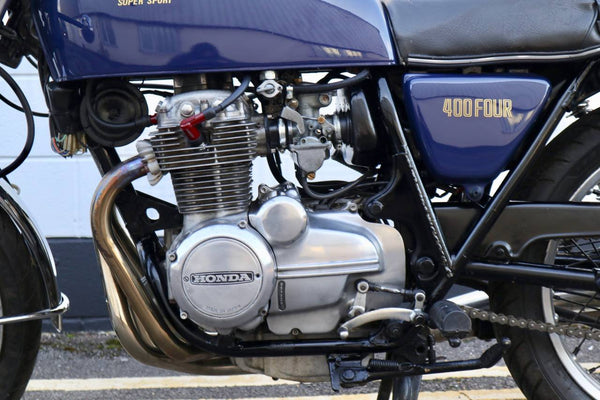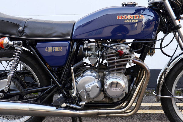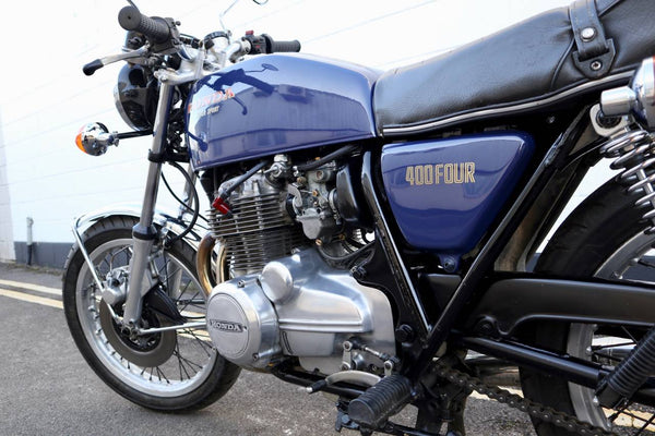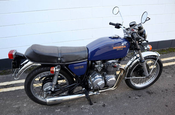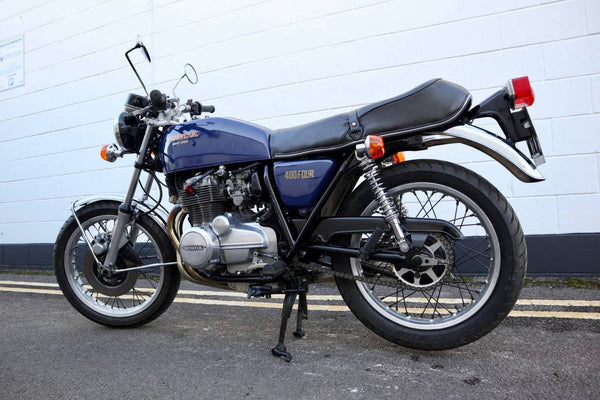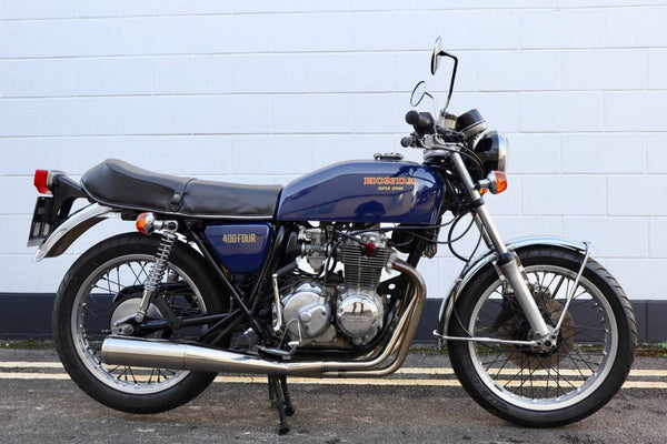 1977 Honda CB400 Four. A Uk example with only 5 former keepers from new. In good condition with Allie rims. Just been recommissioned with new coils, points, condensers HT caps, clutch plates, Plugs, Oil & filter, chain & sprockets . Showing only 14202 miles which may be correct but not certified . A good usable example and a great investment !