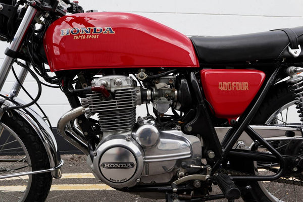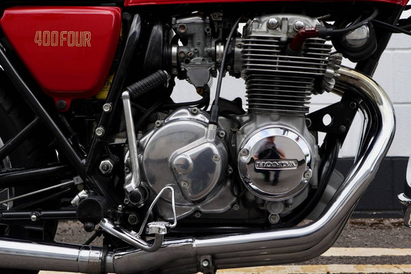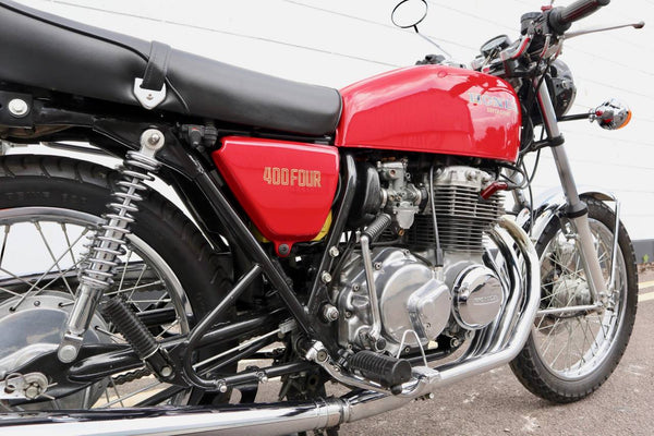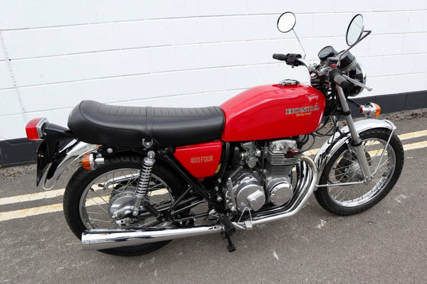 1977 Honda CB400 Four. This is a Uk model with only 32391, the bike was completely stripped down, every single part was gone through and was either replaced with high quality parts from David silver spares or restored. Heres just a quick list of the main work that's gone on.