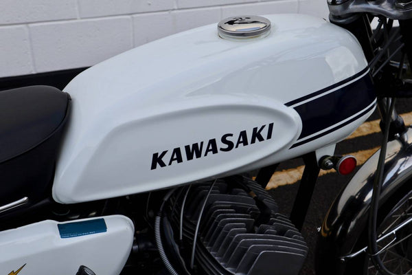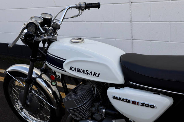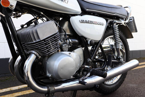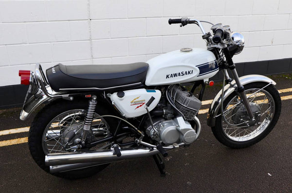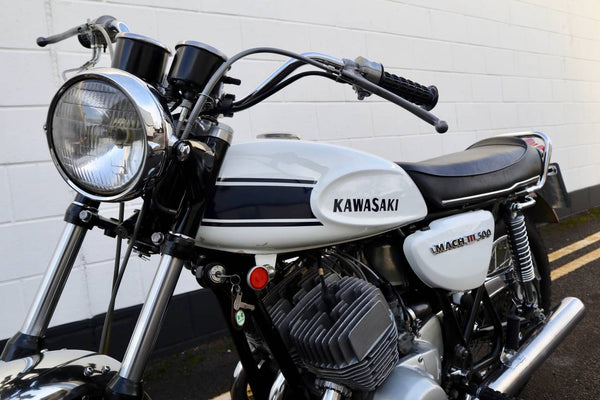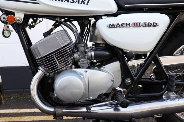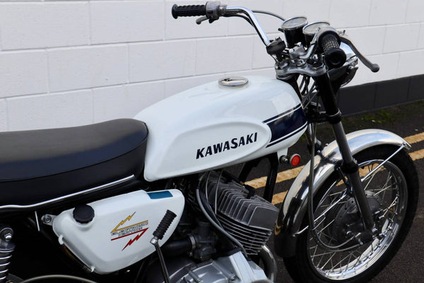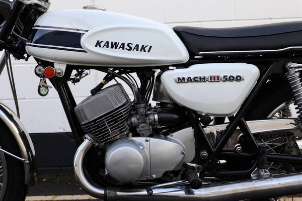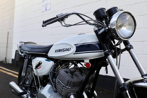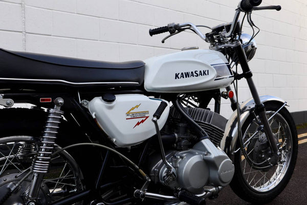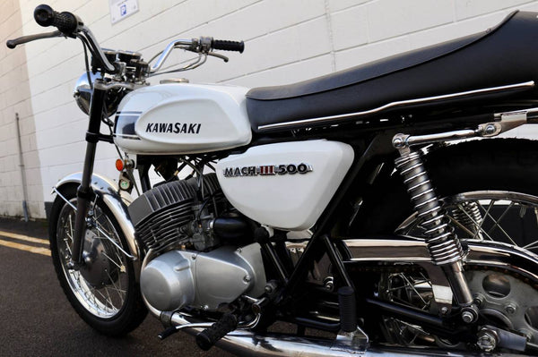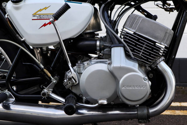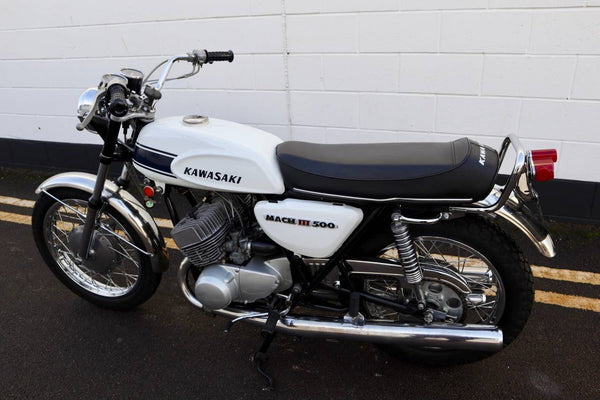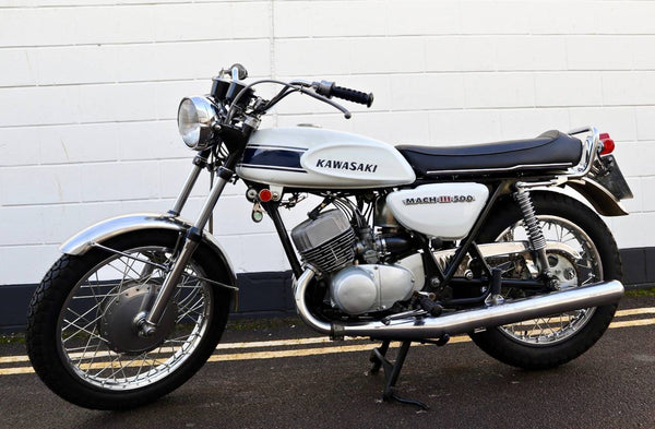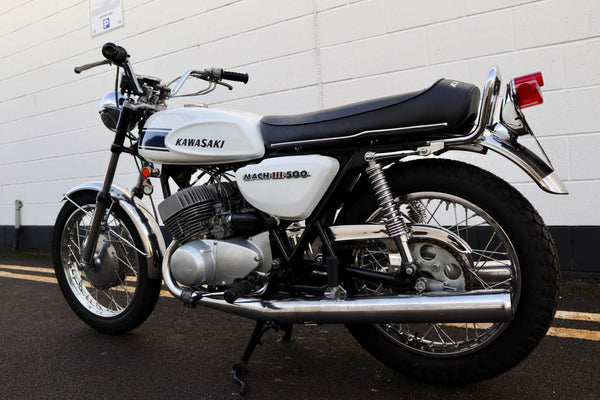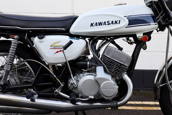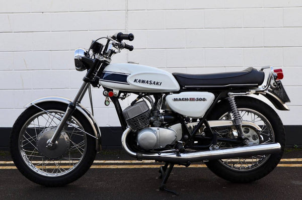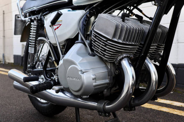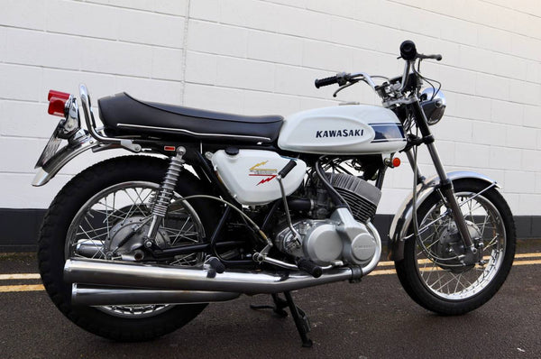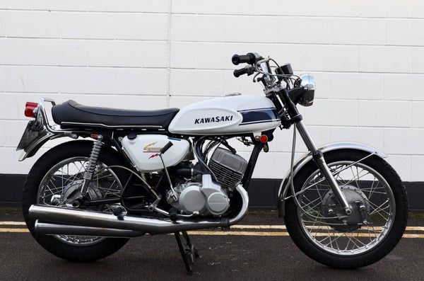 1969 Kawasaki H1 500cc. Gradually restored over a few years by an H1 enthusiast, with restored engine and gearbox, new bottom end and still on standard bores , new crankcase seals and bearings , new rims and spokes , refurbished forks , restored cosmetics including frame , tank and side panels ; all repainted , to bring up to a very good mechanical and cosmetic standard , together with electronic ignition system , new chain tyres and sprockets .