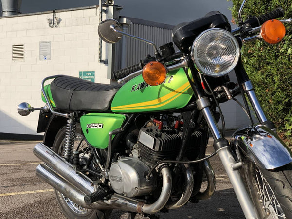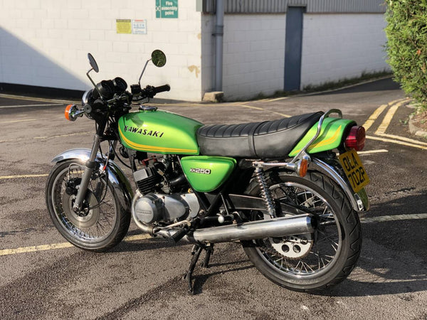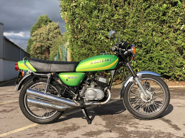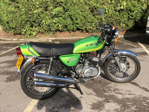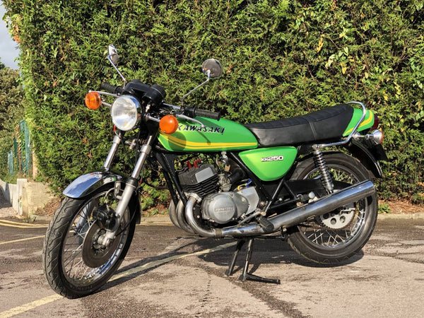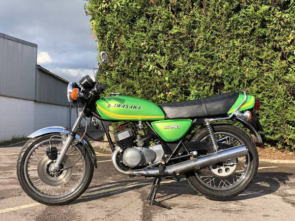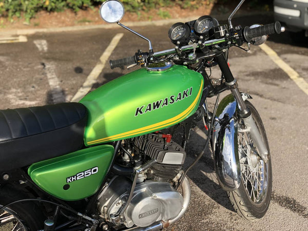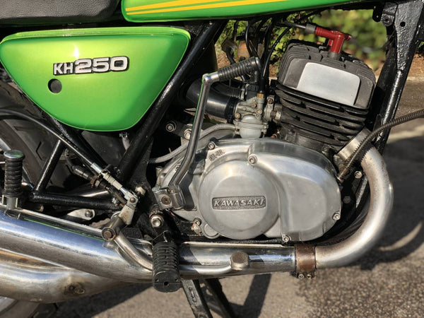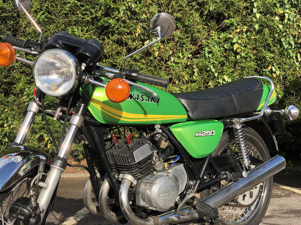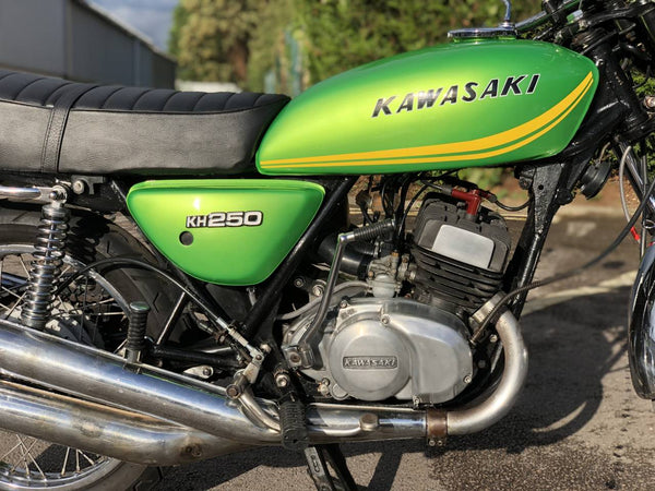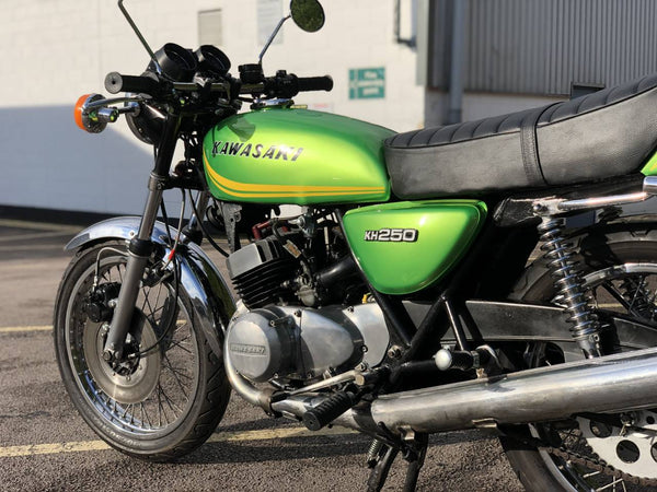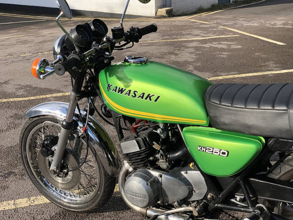 Kawasaki KH 250 1976. A standard UK bike that starts ticks over runs and rides well. Has newly painted tank. In very good useable condition .