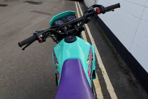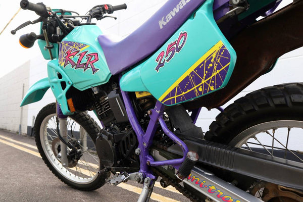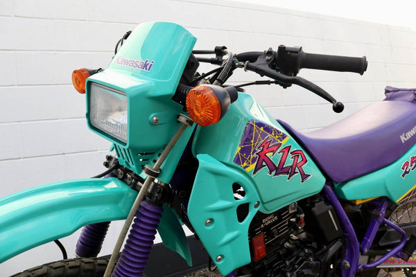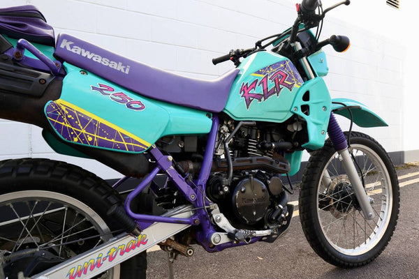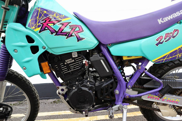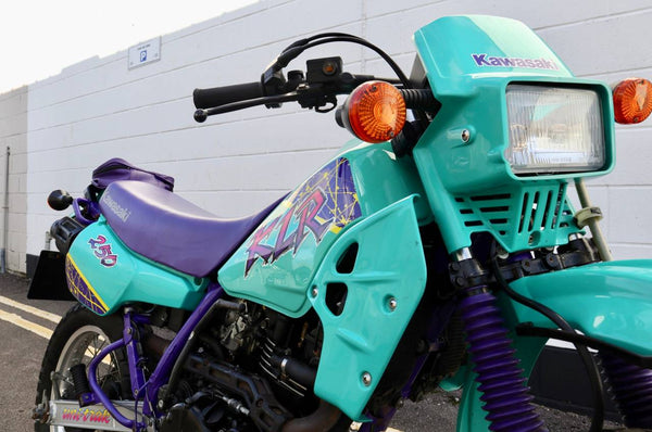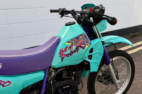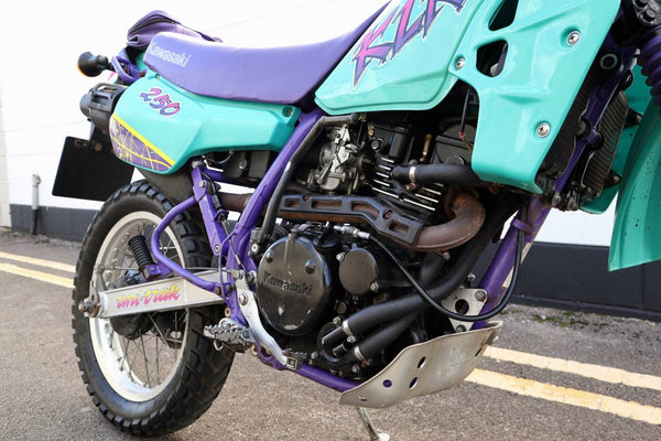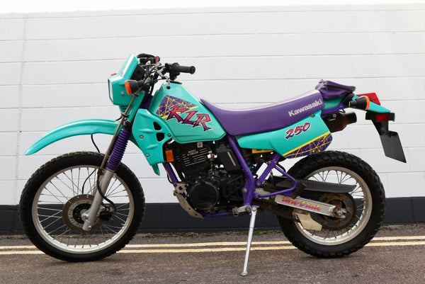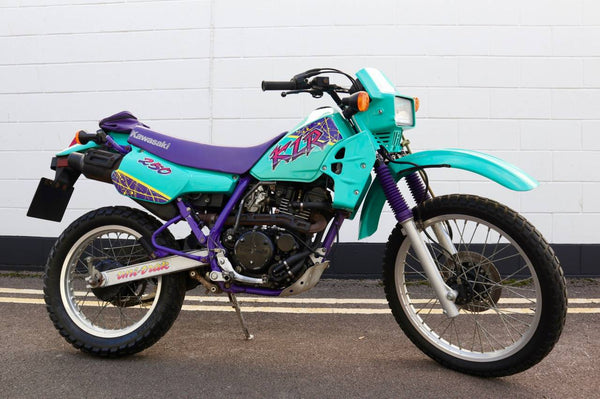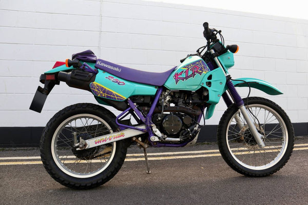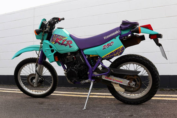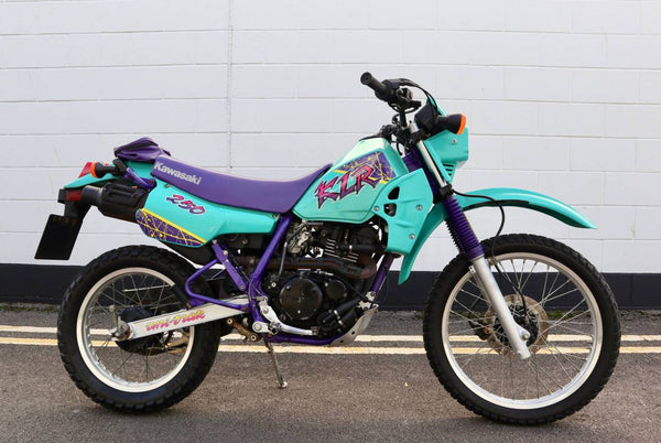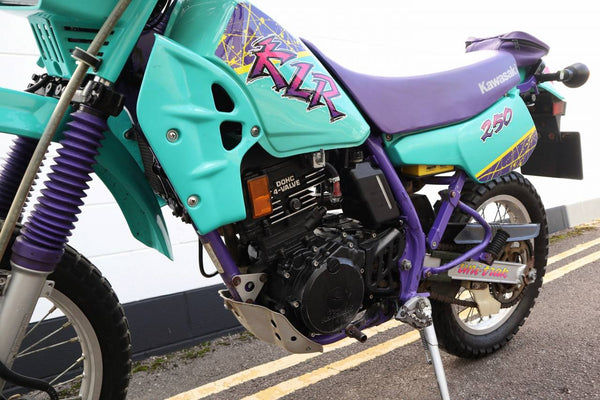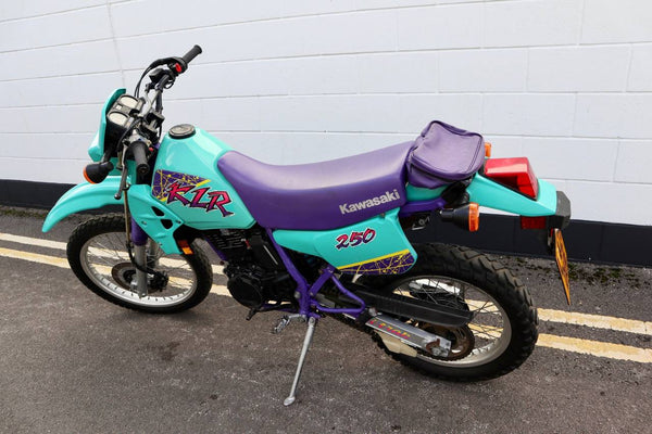1994 Kawasaki KLR250. First registered in the UK in 2021. This is a rare find in excellent original condition with only 5759 miles on the clock. Looks fantastic with its striking/retro Green and purple colour scheme. Starts easily and runs and rides great. MOT'd until the 8th of April 2022. An awesome looking machine thats ready to ride!