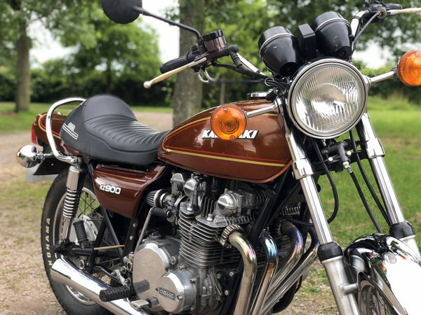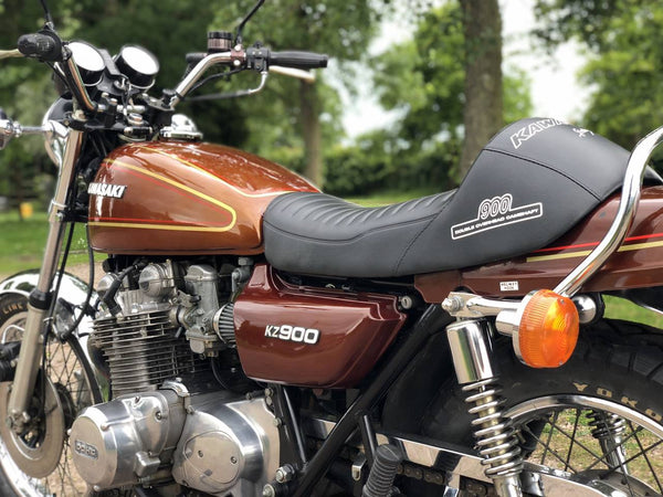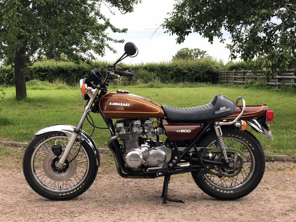 Kawasaki KZ900 , Manufactured 1976 . This Is A Lovely KZ900 , That's Been Mildly Uprated To Sports Exhaust ; Custom Seat & K&N Sports Air Filters . It Starts On The Button , With A Mechanically Quiet Engine & Runs & Rides Very Well , With Correct Frame & Engine Numbers .