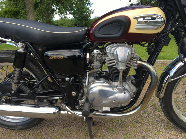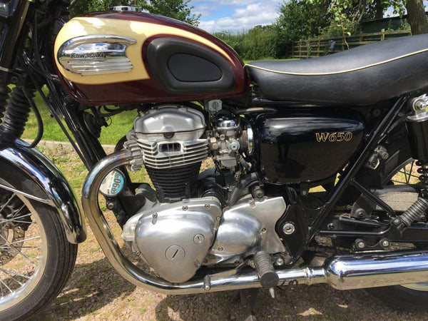 Kawasaki W650 in Burgundy and Cream 2002 With Less Than 2000 Miles From New Very Well Cared For With 2 Previous Owners on the V5C With History 2 Keys and Lock . These Classic Bonniville Look A Likes Come with Kick and Electric Start and Are Very Easy to Live with and Now Are Reaching Classic Status and Are a Very Good Alternative to the 650 Triumph Twins with the Push Button Starter. With 12 Months MOT.Reduced!!