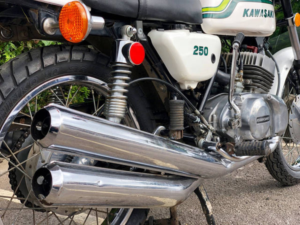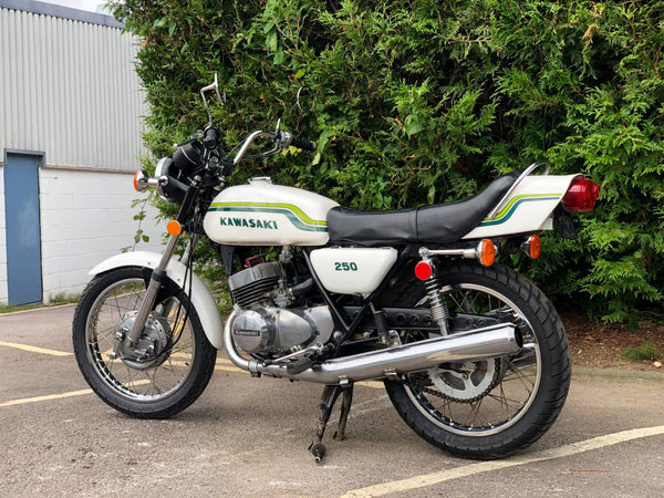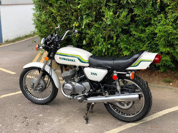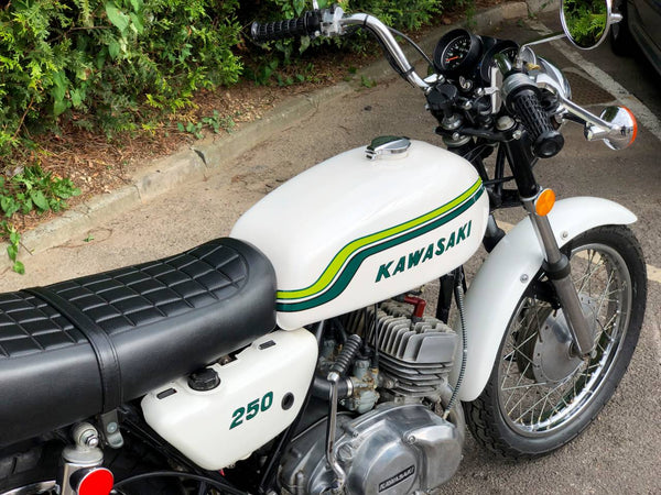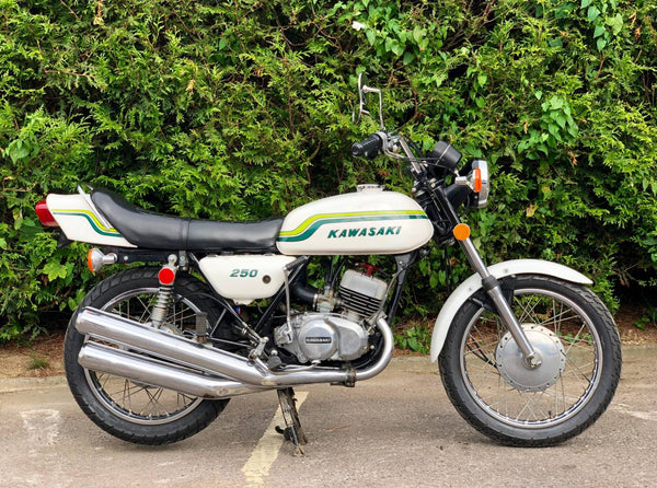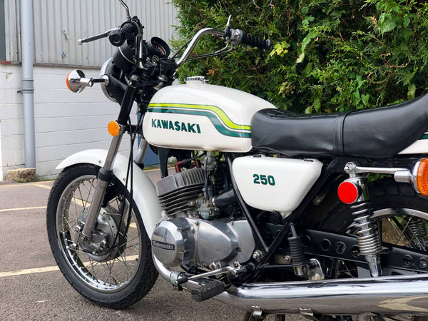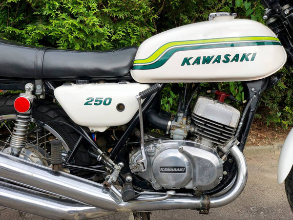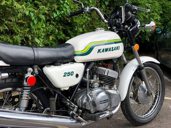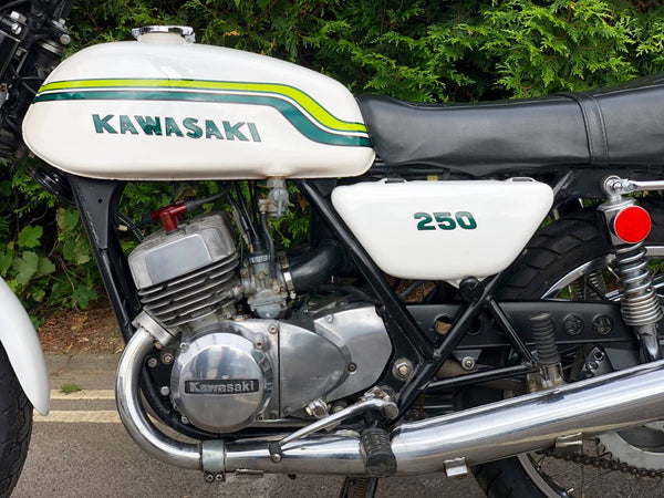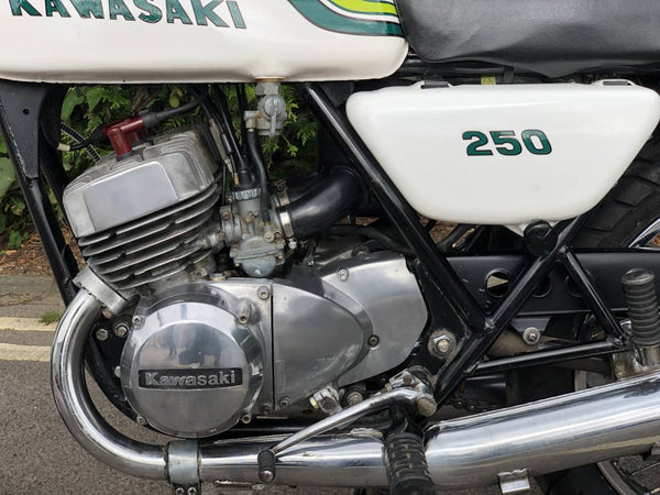 Kawasaki S1A 250 cc 1973 In Green and white. Looks lovely and has had a new crank and pistons and on its first