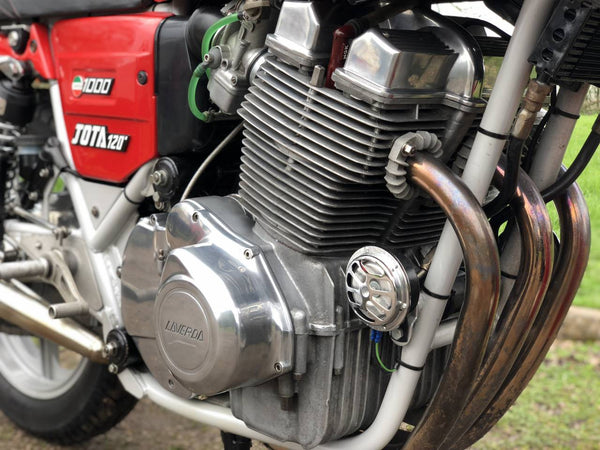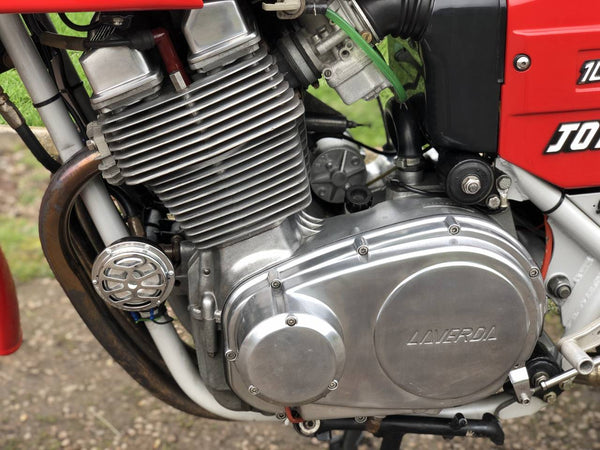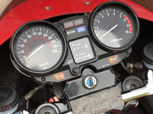 All instruments and switches were taken apart and cleaned. All were kept as originals but the internals of the switches were replaced. The mileage is in km. new handlebar grips were fitted. Internal relays were replaced. The bike has a replacement wiring loom.