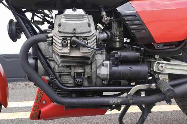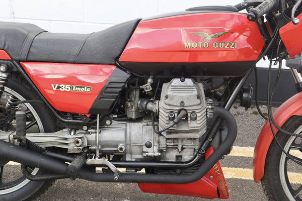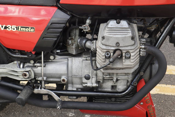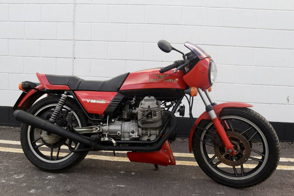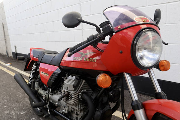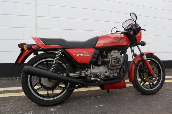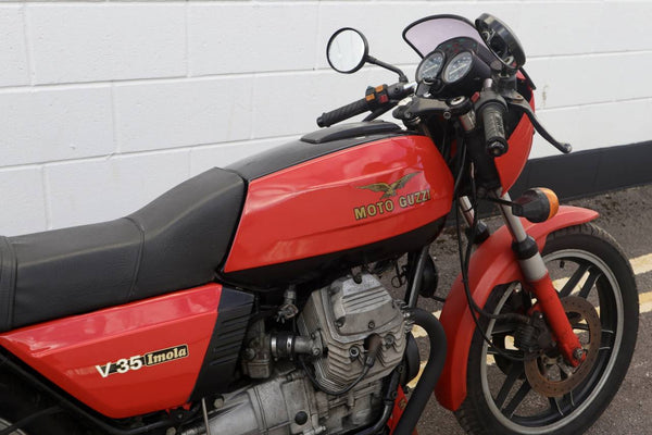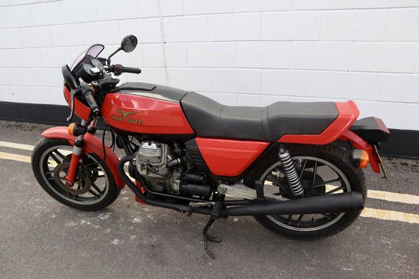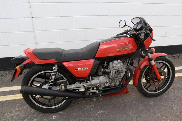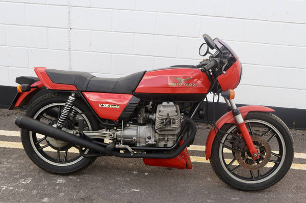 1981 Moto Guzzi V35 350cc. In very good all original condition. Starts on the button and runs well. This is a very usable, light weight, electric start classic that look like a mini lemans but a lot cheaper. Comes with a current log book. Ready to ride!