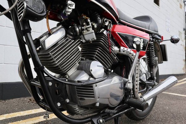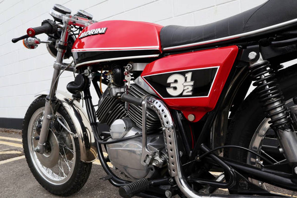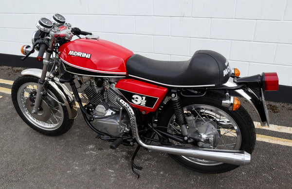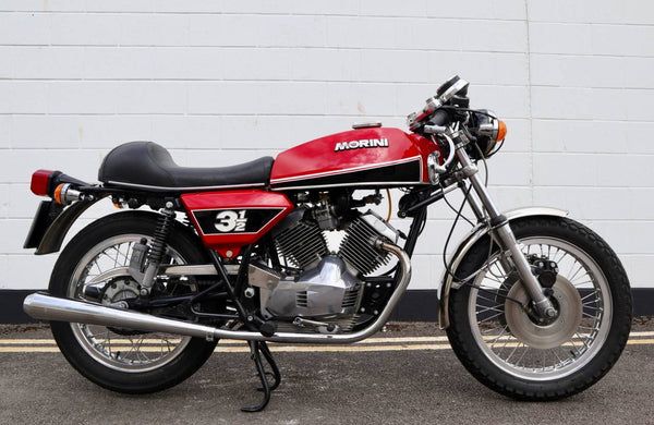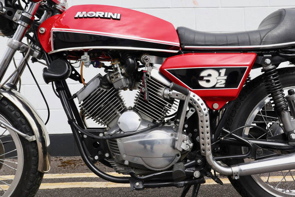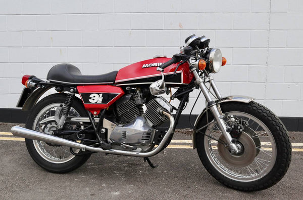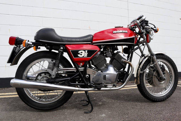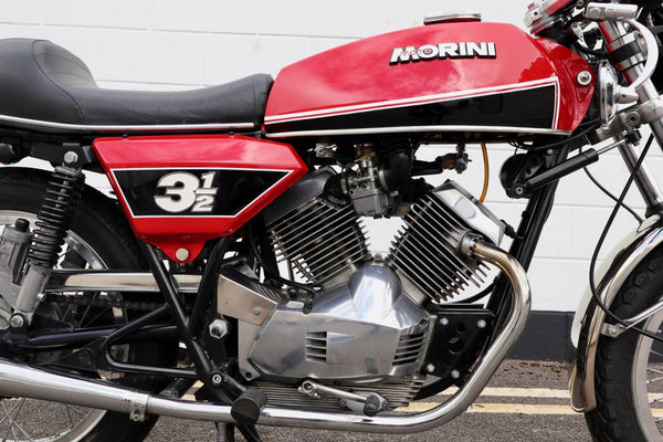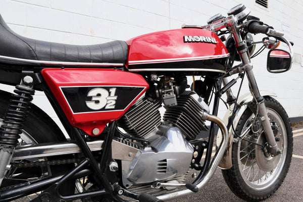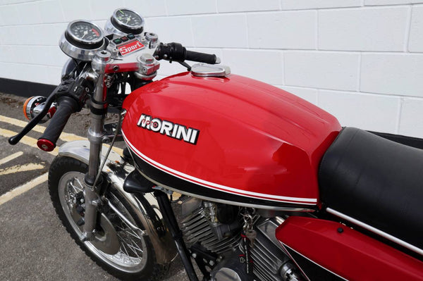 1975 Moto Morini 350 Sport. In excellent condition with new paint and Allie flanged spoked rims and twin disc front end .Looks to be very original, sounds fantastic as can be heard in the video. Imported in to the UK in 2019, comes with a current log book, dating certificate and other bits of its history and showing very low mileage . A top example thats ready to ride .