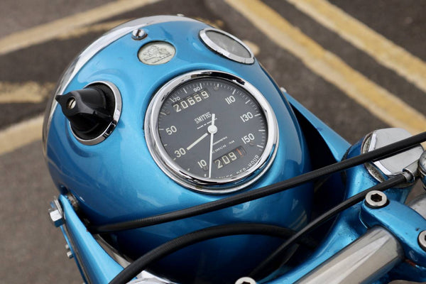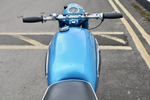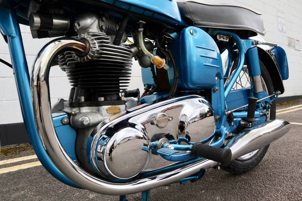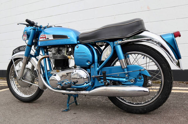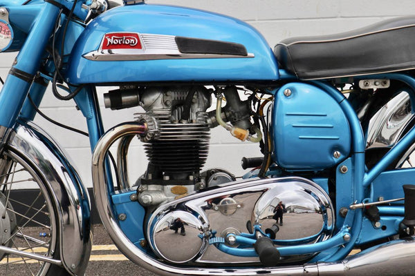 1962 Norton 650SS. This is a very rare, original Blue example from the factory as confirmed by the Norton owners club factory records letter. Also has matching engine and frame numbers. Despatched to Dennis Parkinson 38 - 52 Ings Road in Wakefield on the 25th October 1961. Looks to have been restored in the past as in very good condition with original Dunlop rims. Has electronic ignition fitted. Starts easily and sounds great as can be heard in the video. This is a very rare bike and a great investment .