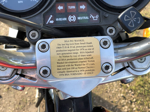 Has All Mots From New And Only 2 Previous Owners , Together With Norton Certificate And Book. This One Comes With Its Original Touring Kit Of Panniers , Topbox And Racks. As Not Used Since April 2017 , It's Been Correctly Laid Up And Is Ready For The Correct Recommissioning Procedure . We Can Give To One Of The Rotary Specialists To Do , Or Sell As Is. £1200 Was Spent At Start Right , On The Engine To Keep It In Superb Fettle , Before It Was Laid Up , Which Can Be Verified By Calling Them. In Lovely , Original Condition , Bar The BSA Styling / Paintwork And BSA Badges ; So This Is A One Off , Of A 100 ! A Lovely , Rare , Sports Tourer With 79 Bhp !Must Be A Great Investment .