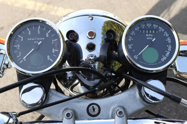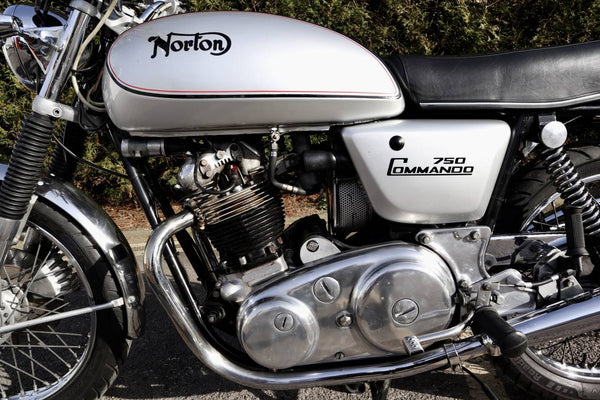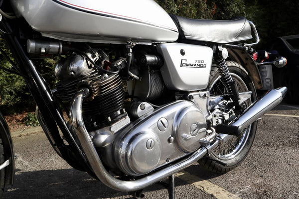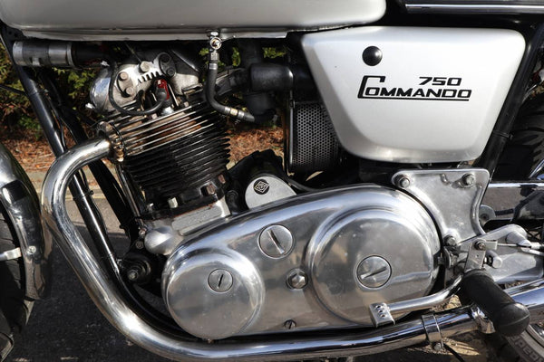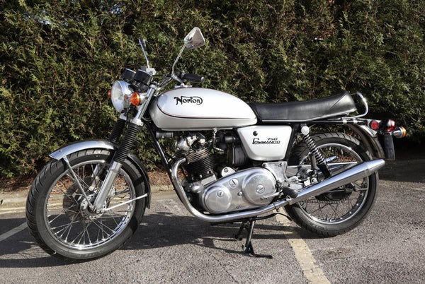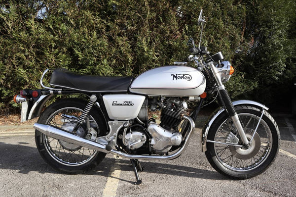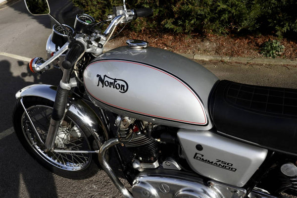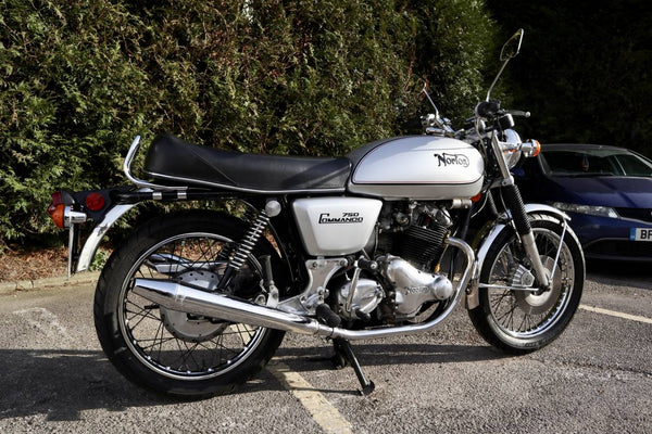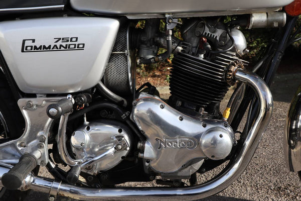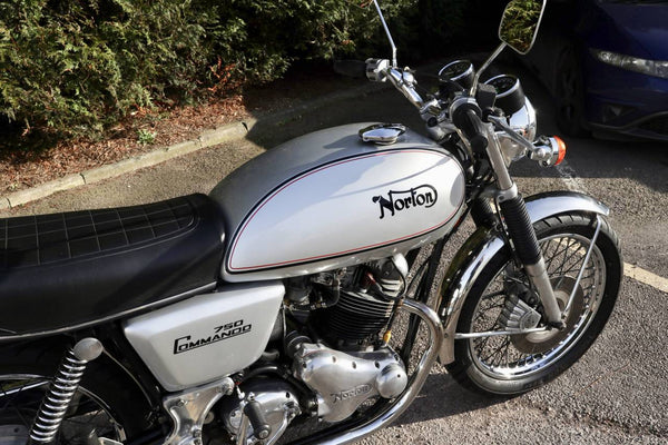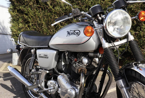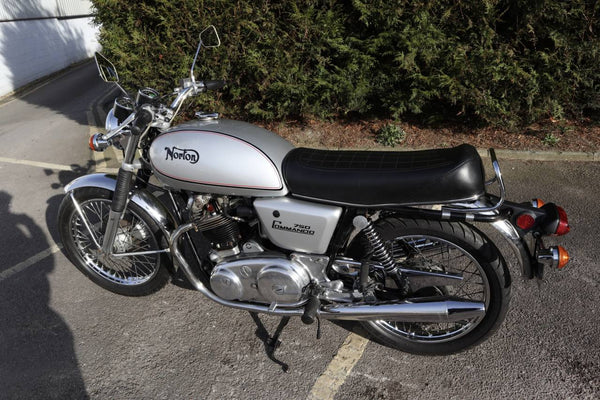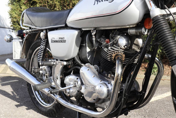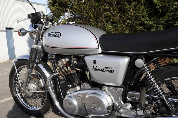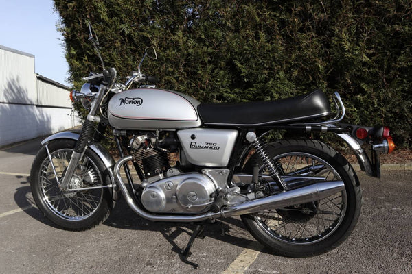 Norton Commando 1972 750cc. This is a lovely example with an electric starter fitted professionally (£1700) and showing only 12446 miles on the clock . It has matching frame and engine numbers and Norton Owners Club Certificate .