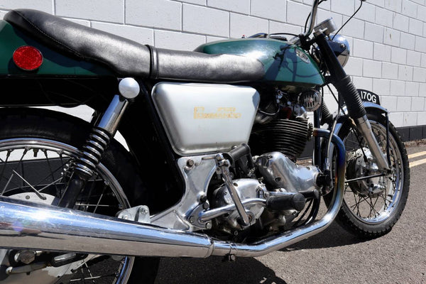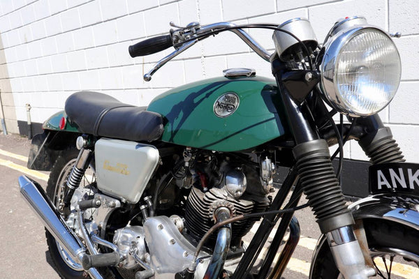 1968 Norton Commando Fast Back 750cc. In all original condition with matching engine and frame numbers. Starts easily with Mikuni carb conversion, the sounds smooth and powerful. Now rare to find an original bike thats still in good usable condition and that is ready to ride. Comes with current log and dating certificate. One of the rarer models of commando, a great investment and also great fun!
