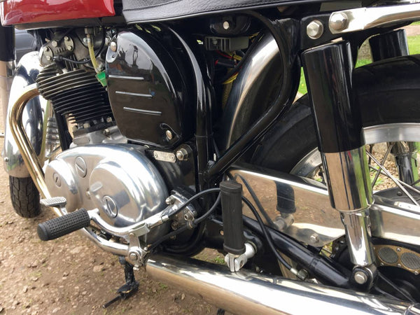 Upgraded , With A Restored Commando 750 cc Engine , In A Slimline Featherbed Frame , With Road Holders , Rebuilt Wheels , With Flanged Alloy Boranni Rims , Pea Shooter Silencers , Twin Commando Clocks , Etc .