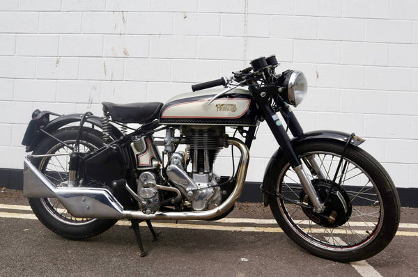 1948 Norton ES2 500cc Plunger. Recently rebuilt to resemble a Manx Norton with Custom pie crust fuel tank, period brooklands silencer, Twin Clocks, vented front brake and Manx paint job. Running Castrol R, sounds great as can be heard in the video. Half the price of a Manx and looks just as good. Comes with original buff green log book and original transferable registration number ( ARC 426 worth £3000 ). An awesome looking Norton that's ready to ride !