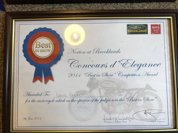 1953 500cc Norton International Clubman TT Factory Special Order Number 16 : This Iconic Machine Is A Factory Special Order, Number 16 , Best In Show Winner 2 Years Ago At The Norton Owners Club Annual Show At Brooklands ; The Biggest And Best Norton Show In The World ! It Also Won The Most Desirable Norton Award And Comes With The Winners Rosettes And 2 Framed Photographs Signed By The Owners Club .